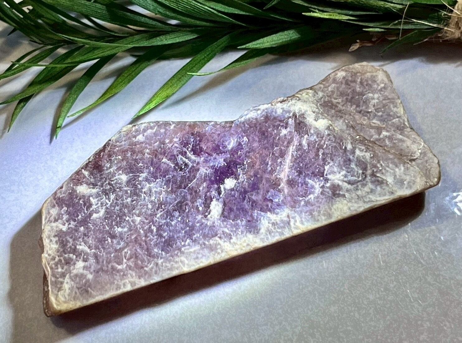 断面が光を受けて反射するパープルメタリック色のテラストーン・レピドライトです✨
