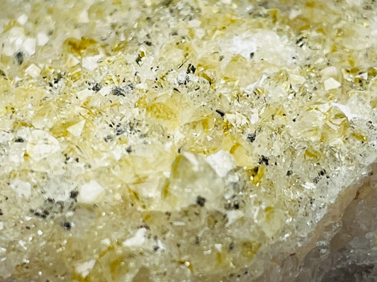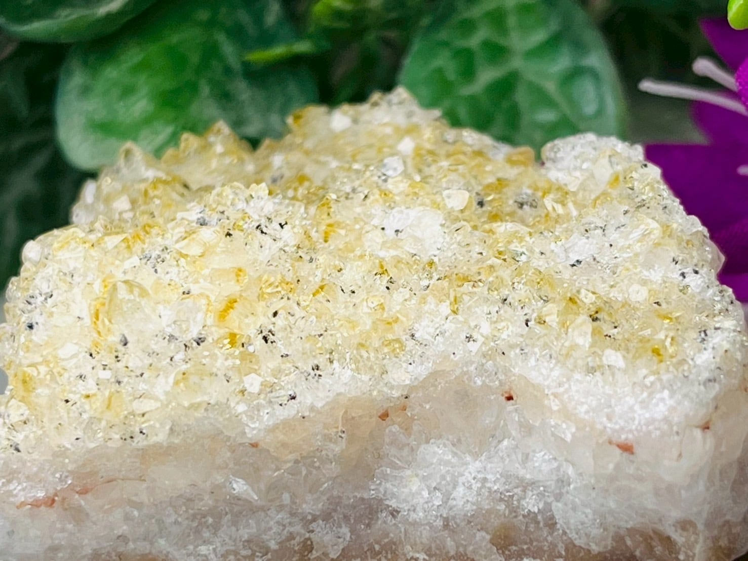 光を当てると細かな結晶がキラキラ光る、シトリンドゥルージークォーツのクラスターです✨