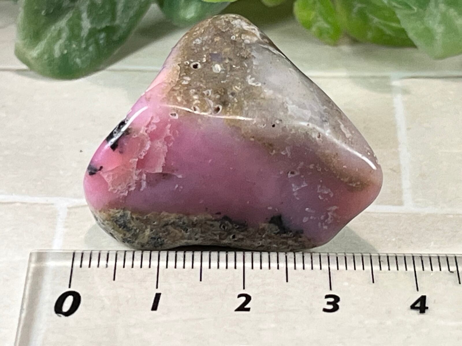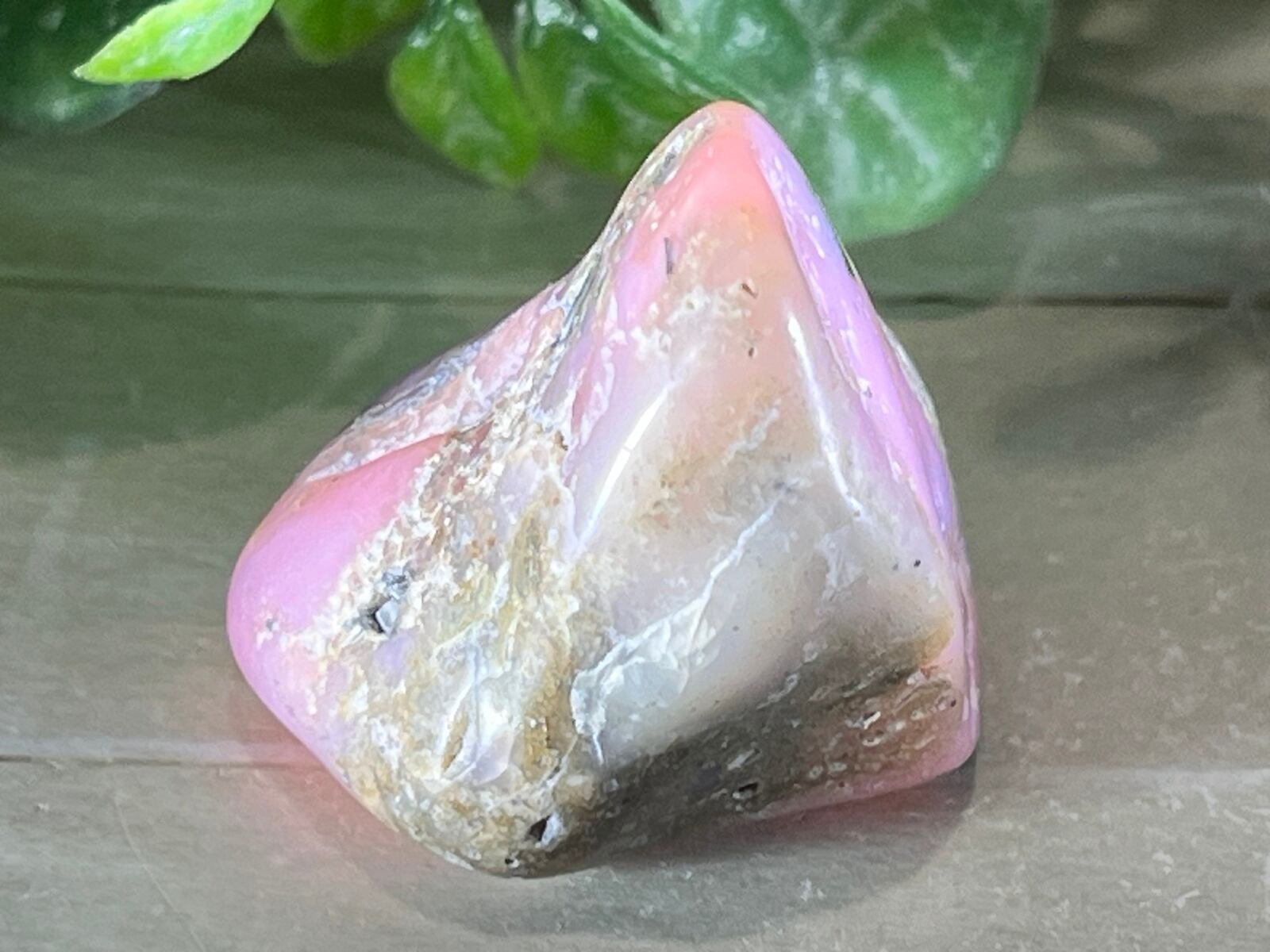 「永遠の命」が石言葉のデンドライト(忍石:茶色の部分)が付いた、ちょっと珍しいデンドリックピンクオパールのタンブルです✨