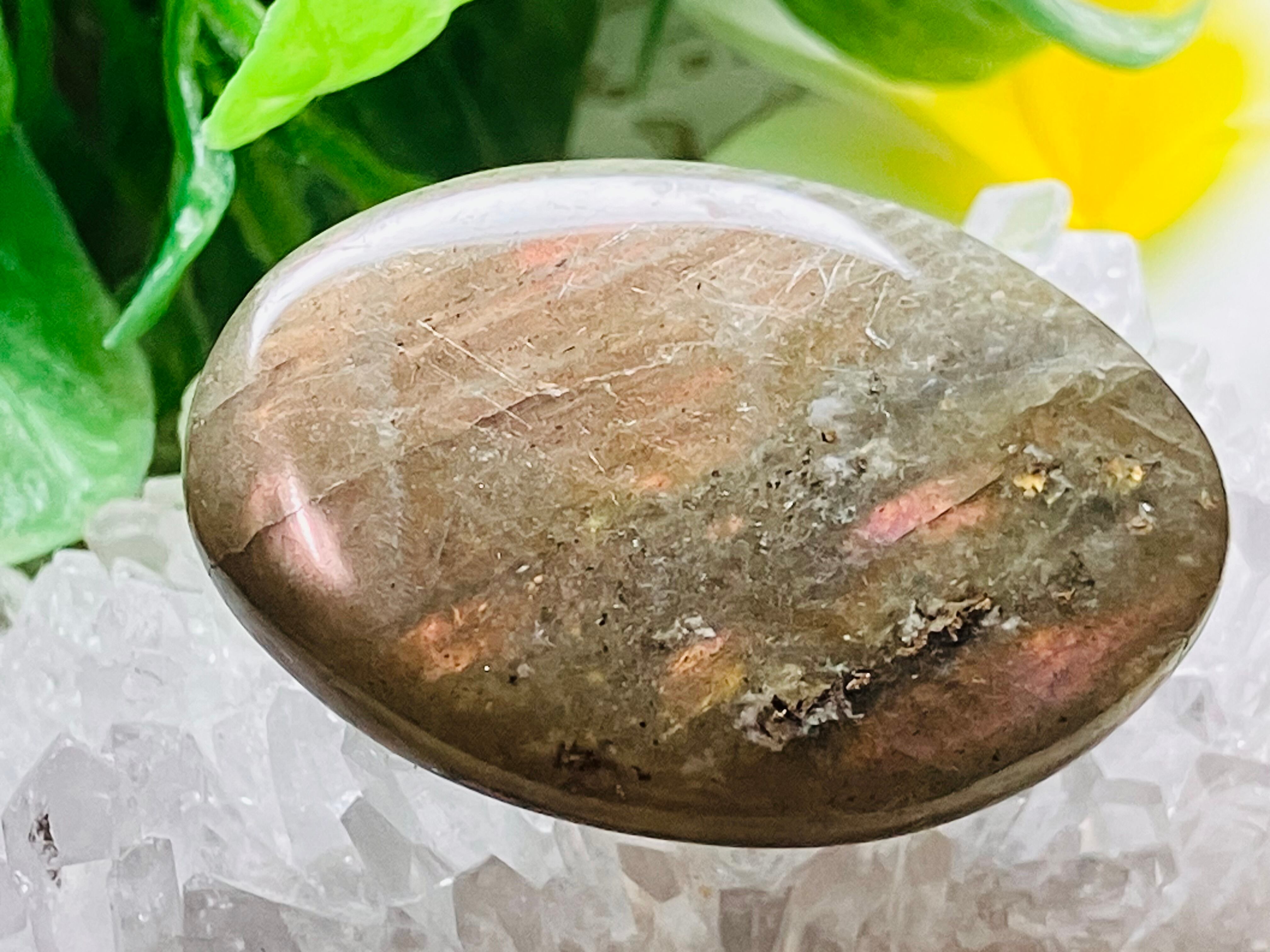 ライトを当てる角度によりラブラドライトには珍しいパープルのレッセンスが現れます✨