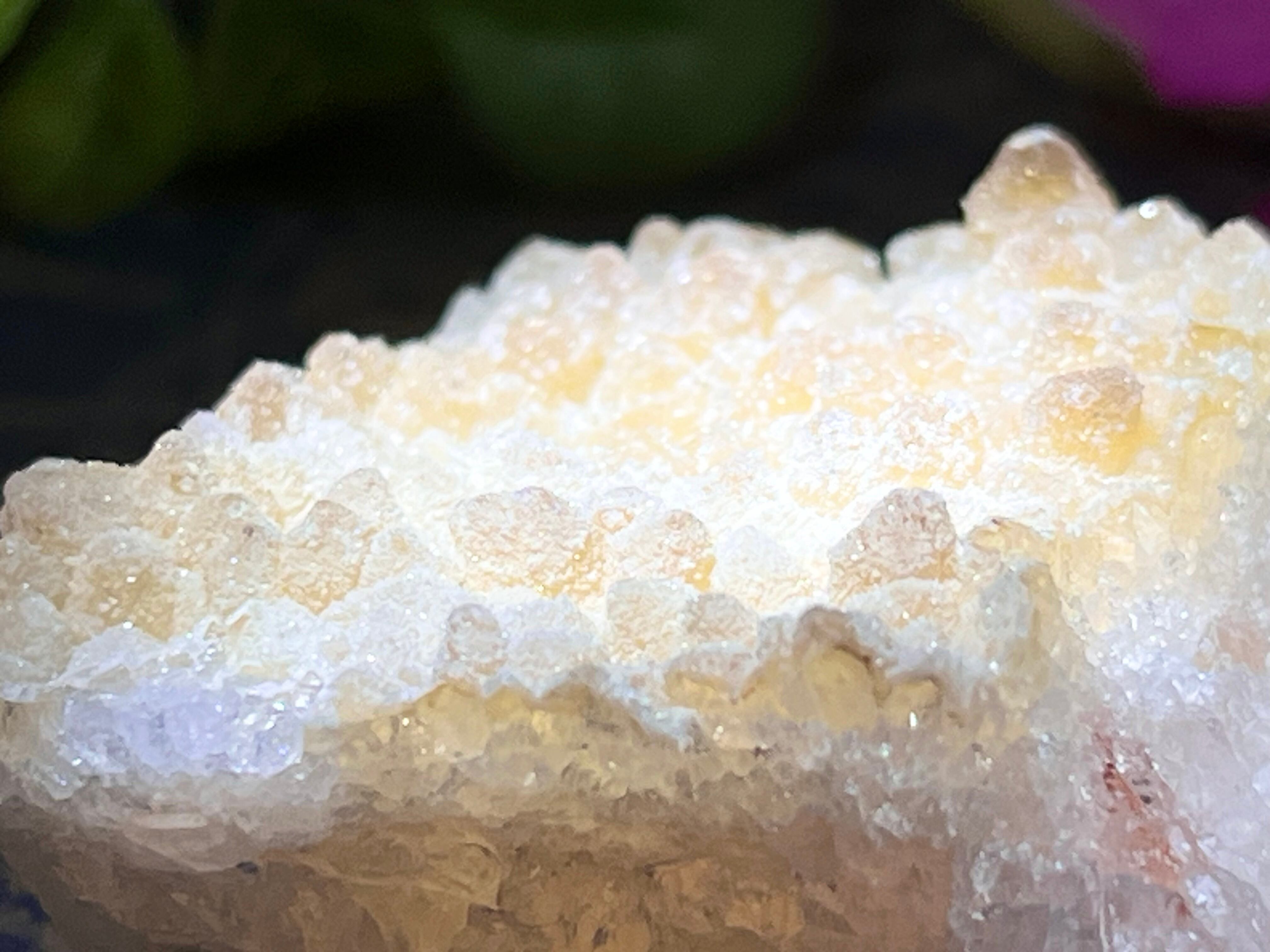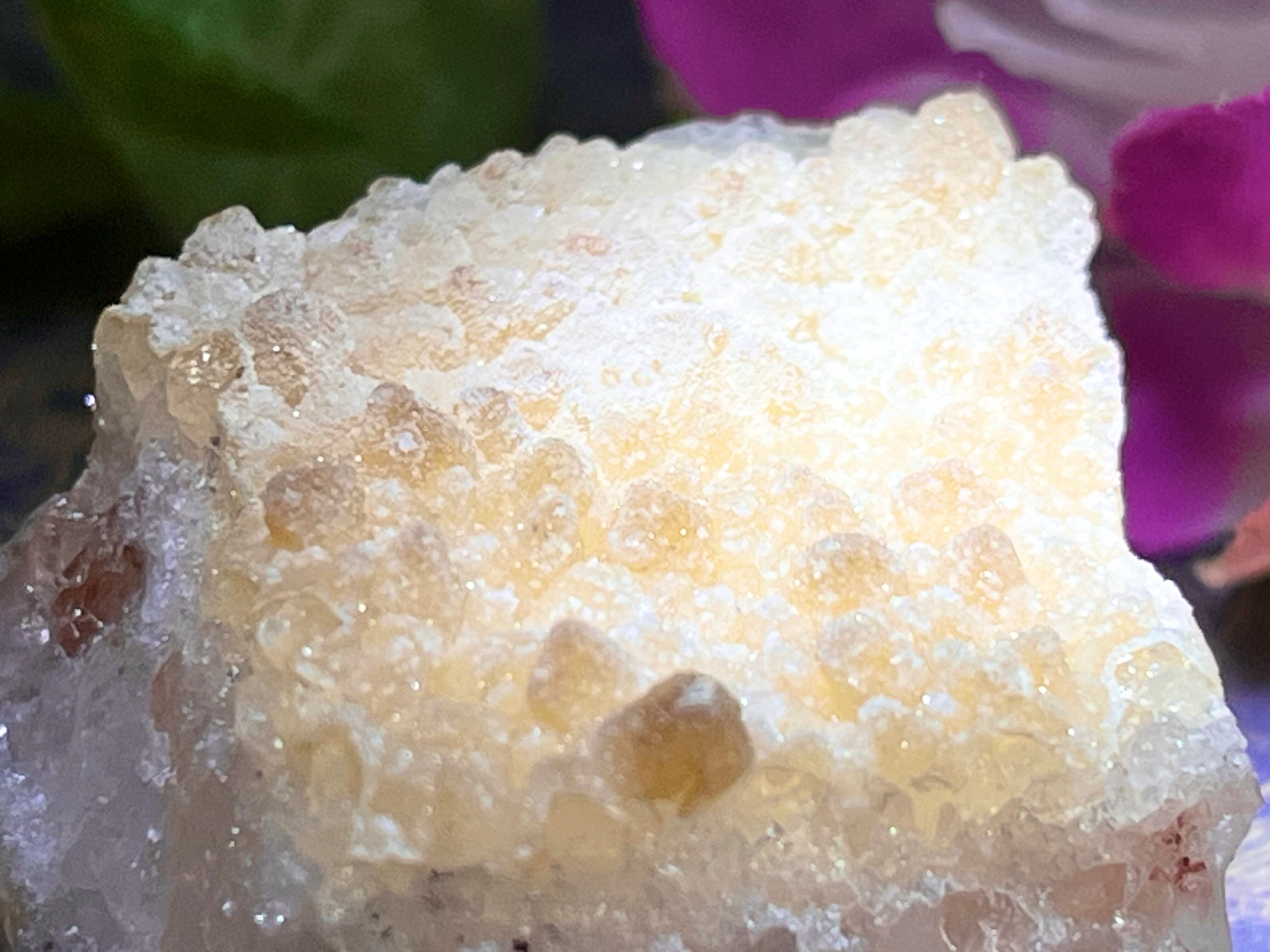 粉砂糖のようなカルサイトがクラスターの上に乗っており、ドゥルージーもキラキラ✨