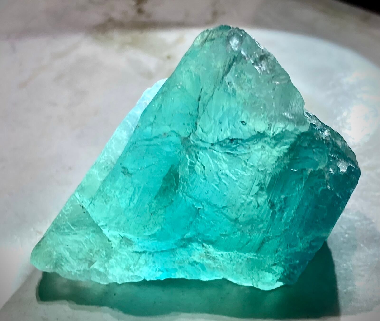 エメラルドグリーンとブルーのグラデーションが美しい、フローライトバイカラーラフストーンです❁⃘*.゜