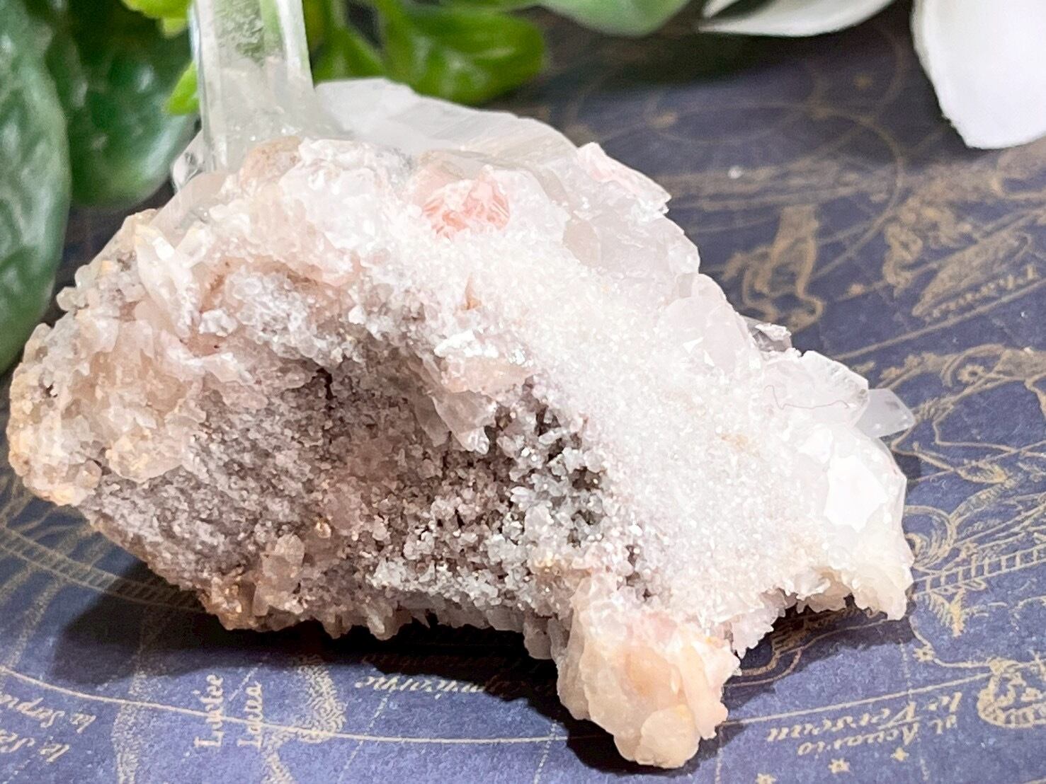 結晶がくにゃんと湾曲しているカーブド(曲がり水晶)が1本生えているヒマラヤ マニカラン産ピンク水晶 クラスターです✨