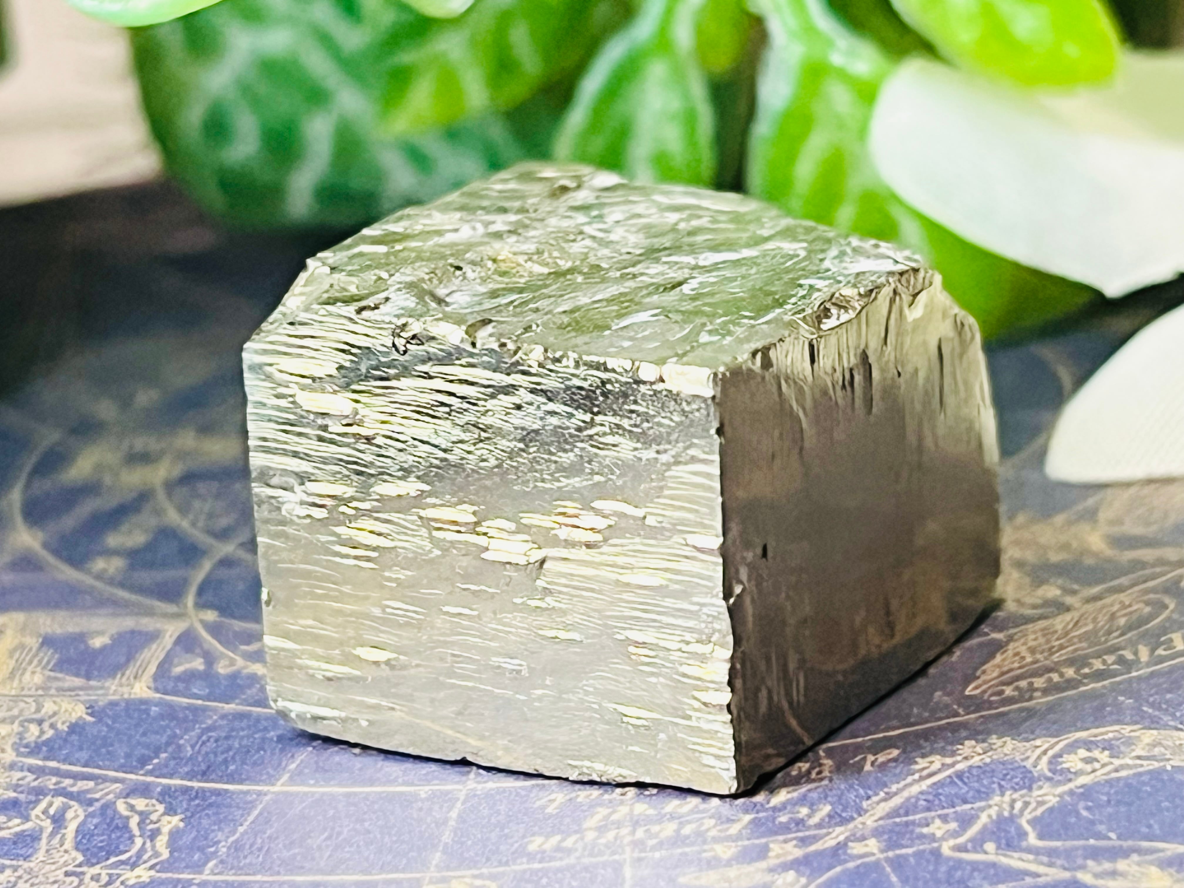 このようにパイライトは形にも意味があり、綺麗なキューブは安定力がとても強く、心身のバランスをとるのに有用です。