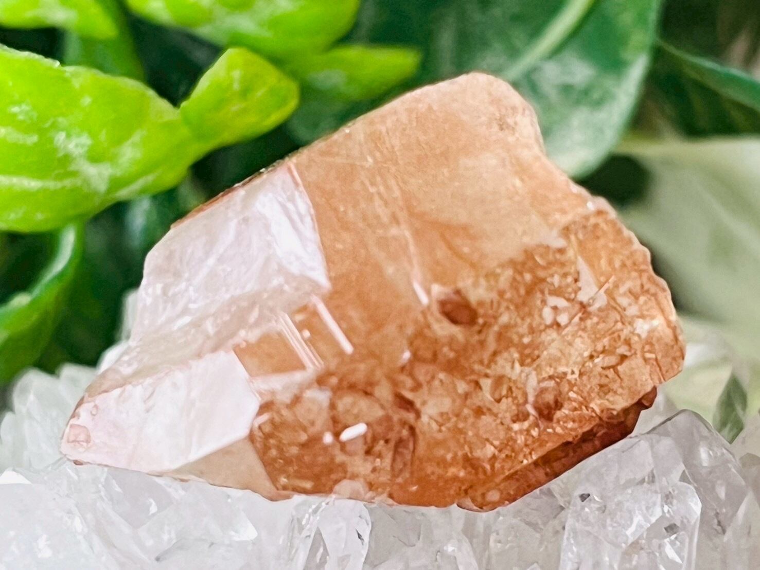 多くのカラークリスタルは、内包物の影響によって赤色に発色したり、緑色に発色したりしますが、このタンジェリンクォーツは、水晶の表面に付着したものの影響でオレンジ色に発色しており、鉱物学的にもとても特徴的な石だと言われています。