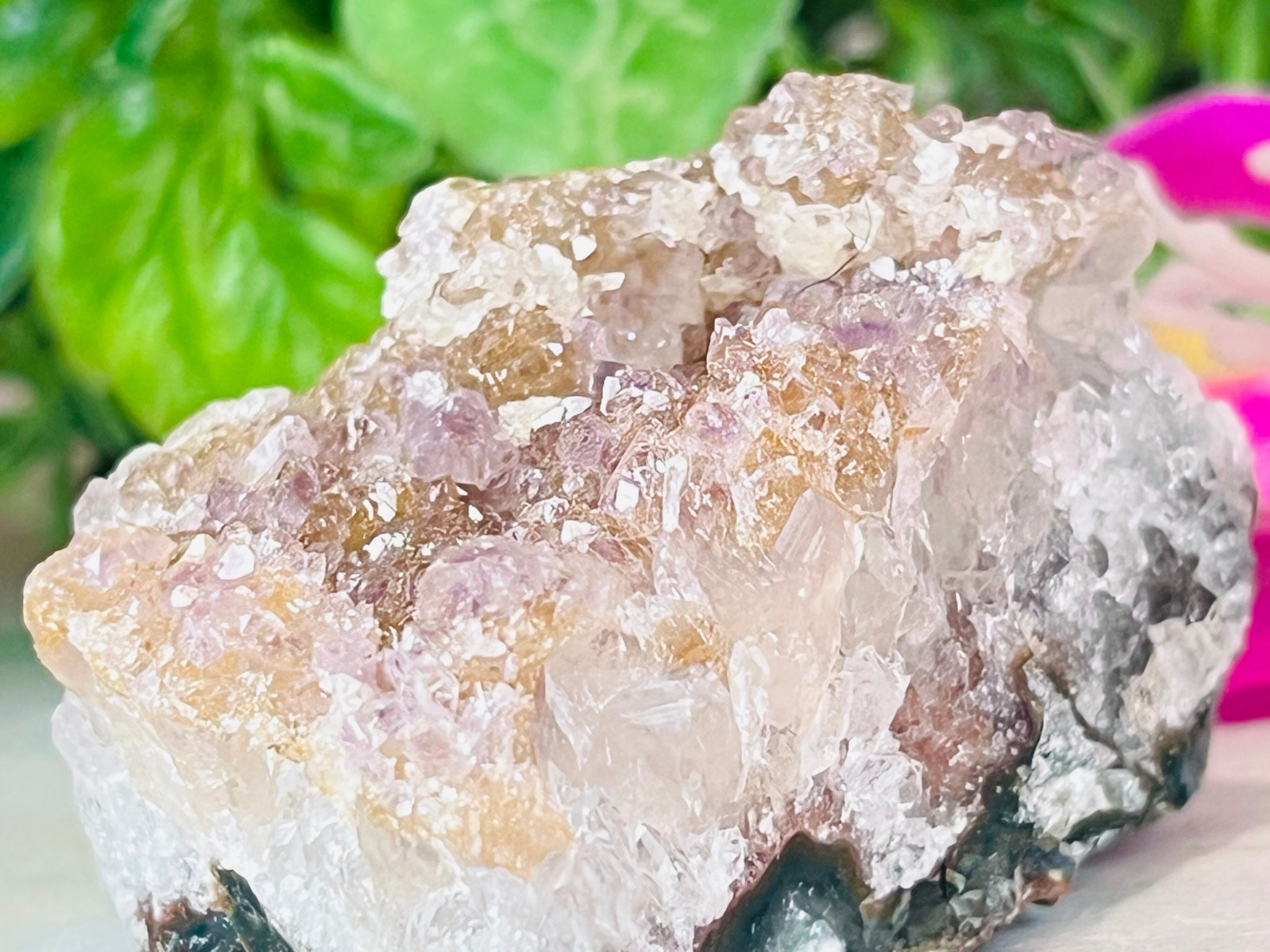 ウルグアイ産で藤色のアメジストとザラメのようなシトリンが混ざり合ったアメトリンは、ギャラクシーアメジストの中でも非常に珍しいパターンです✨