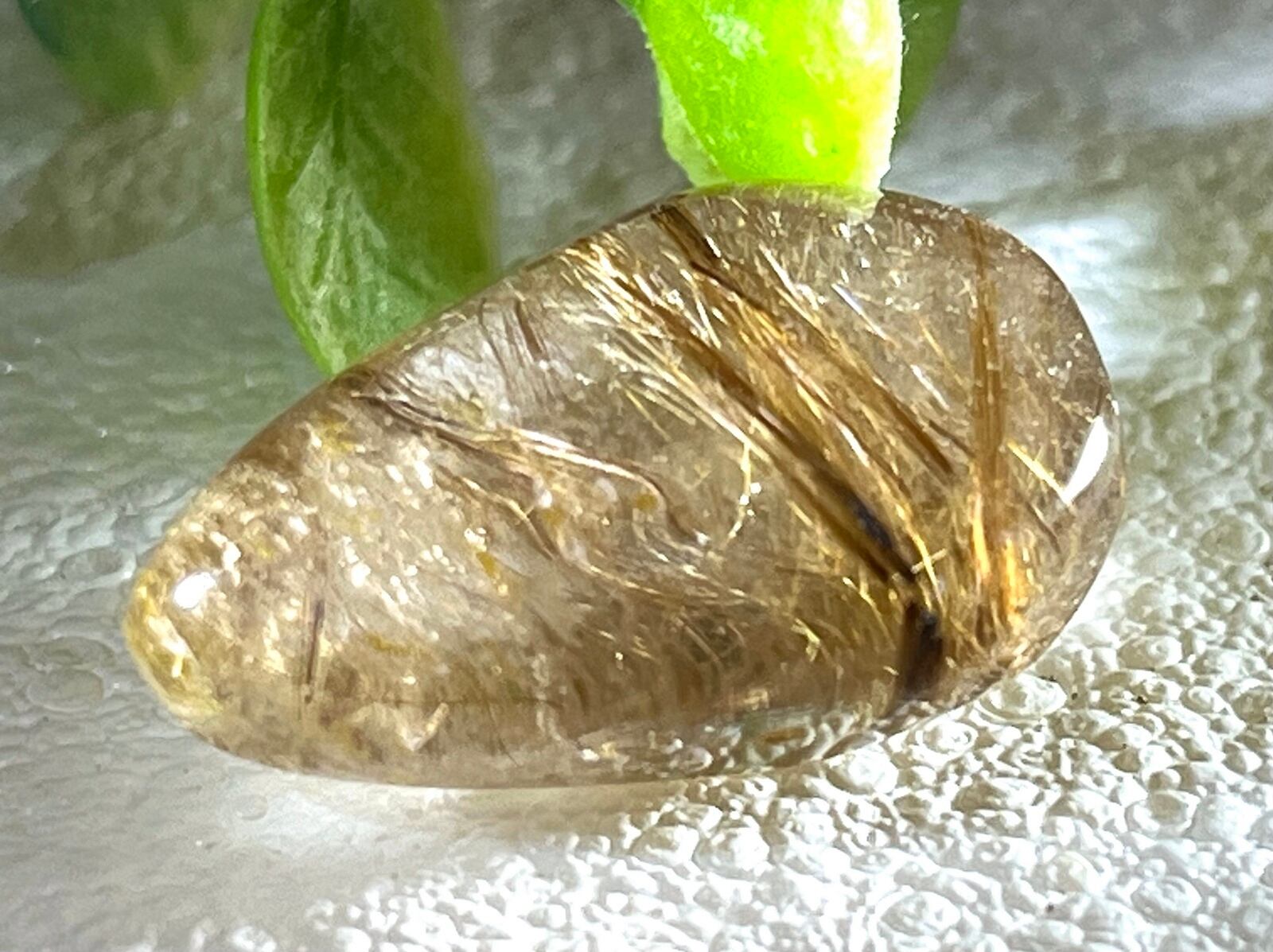 お金の招来に効果があると名高い、ゴールデンタイチンルチルクォーツのドロップ型カボションです✨