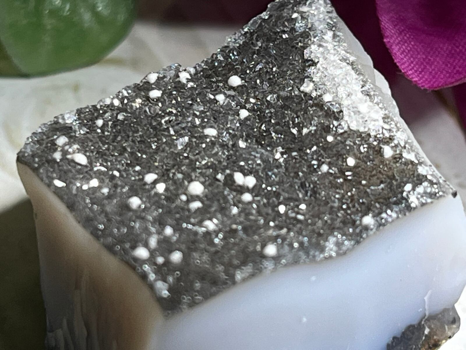 アメジスト類の中で、紫の色が濃く一見「黒」に見えるものは「ブラックアメジスト」と呼ばれ、まさに銀河系のよう°⌖꙳