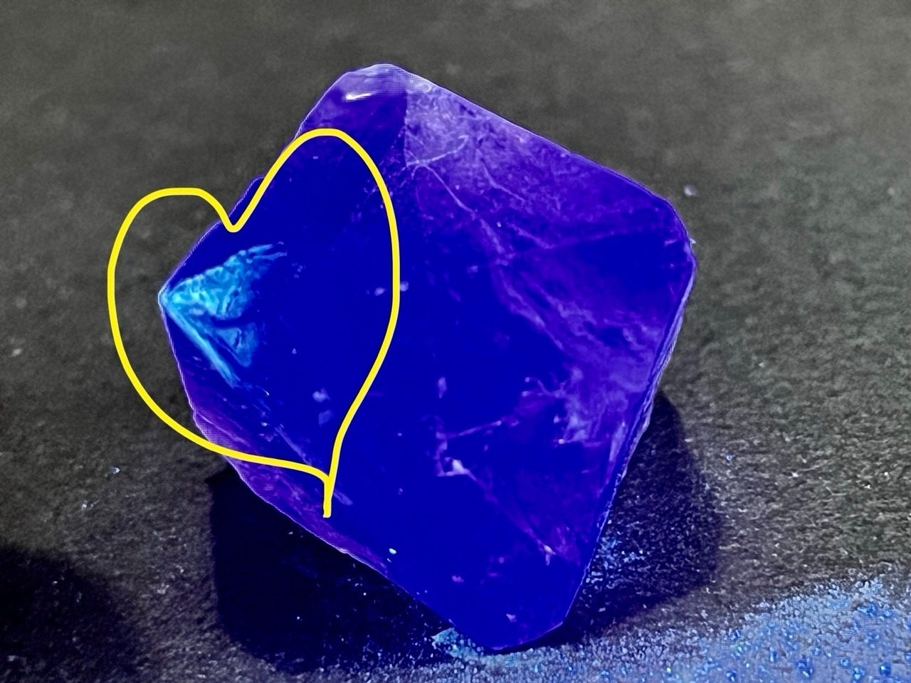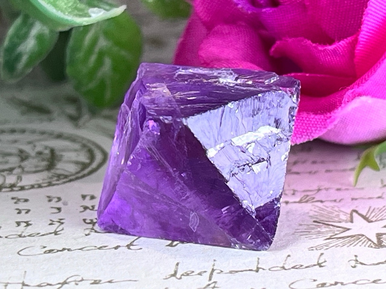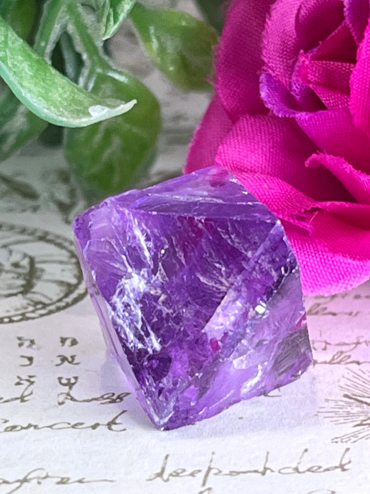 ライトを当てる角度によって壮麗なレインボーが煌めくイリノイ州産のパープルフローライト原石です✨