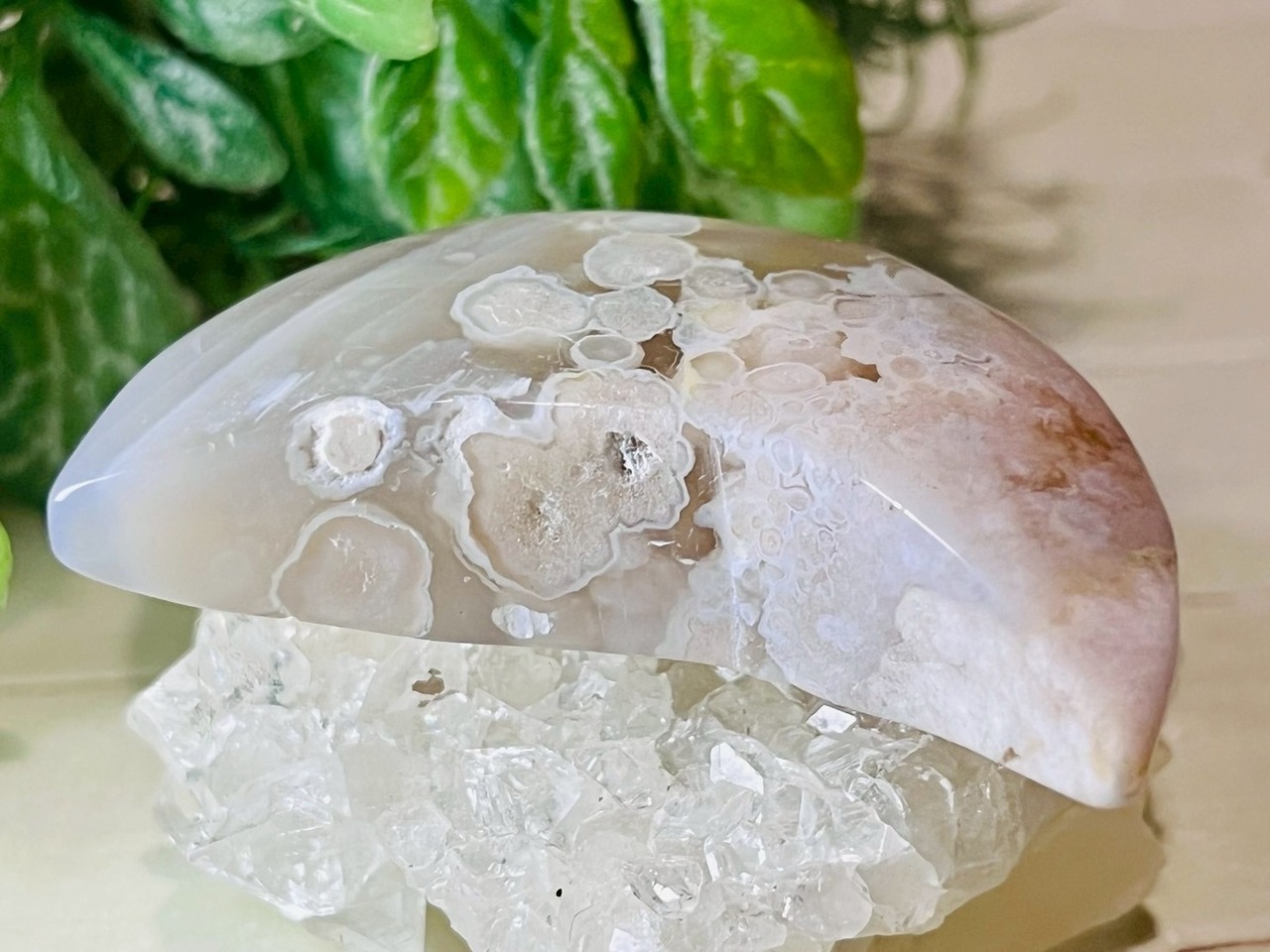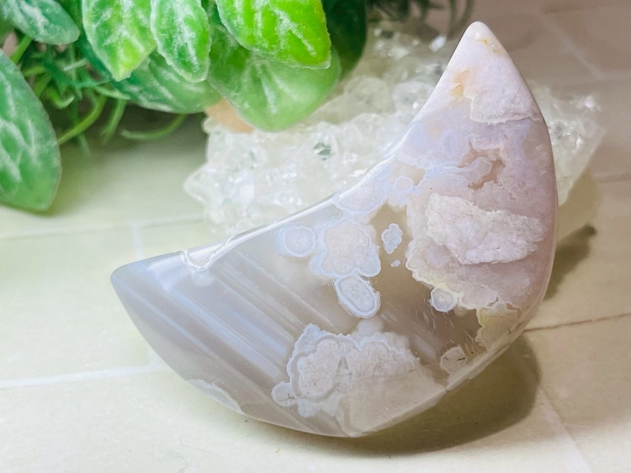 まるで友禅✿ チェリーブロッサムアゲート 櫻瑪瑙 月型 タンブル 原石 ムーン