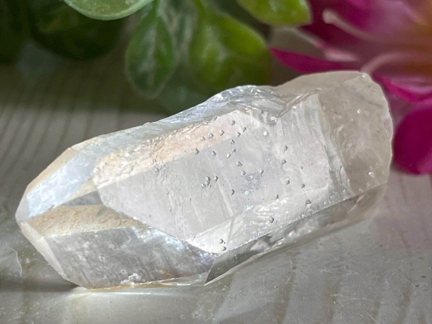 メインファセットにたくさんのレコードキーパーが入ったピンクレムリアンシード クリスタルです✴︎
