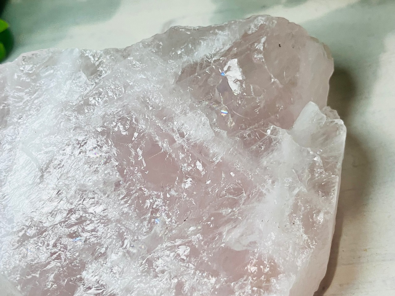恋愛成就✿*:・ 大きな桜色ローズクォーツ 紅水晶 虹入り 原石 ラフ