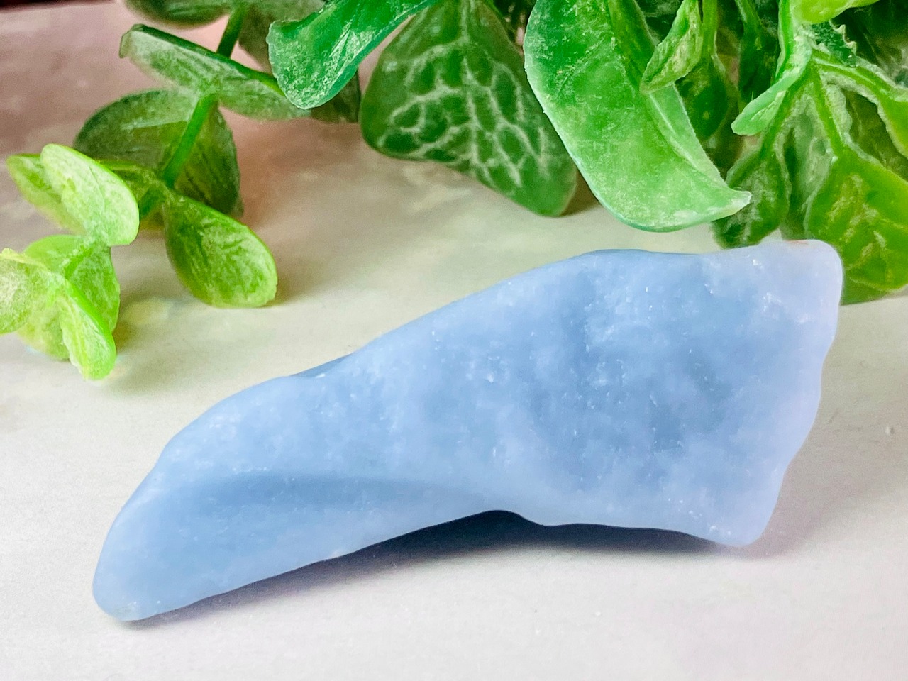 美しい空(天)のような色が連想させたのか、エンジェライトは「天使」という意味のギリシャ語が名前の由来です。まるで、神からのメッセージを伝える天使のように、天とのパイプライン的な役割を持つといわれています。直感やインスピレーションのアンテナを増幅し、自らの内なる声や叡智を届け、現状を打破する「気づき」を与えて、大切なチャンスを逃さないようサポートしてくれるでしょう。