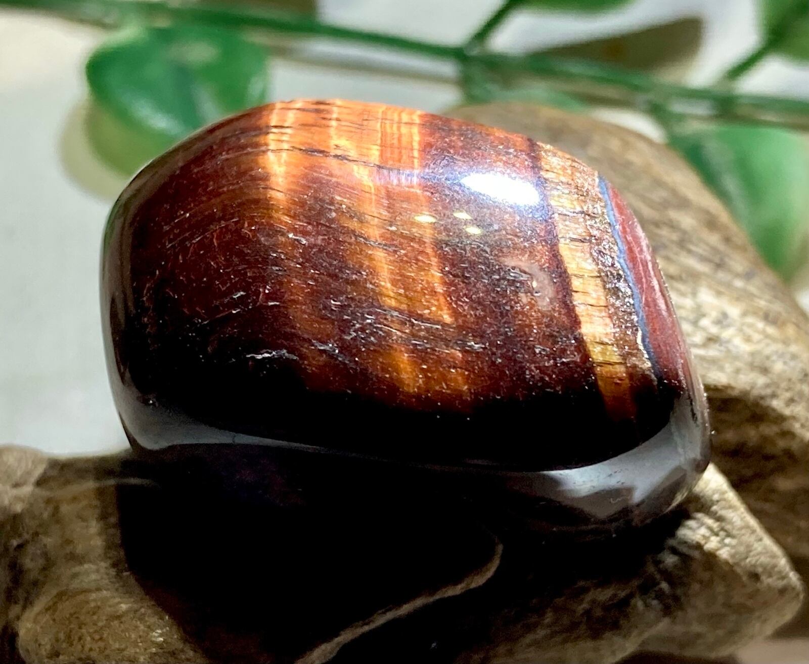 緋色がかった虎目のシラーが美しいレッドタイガーアイのタンブルです✨