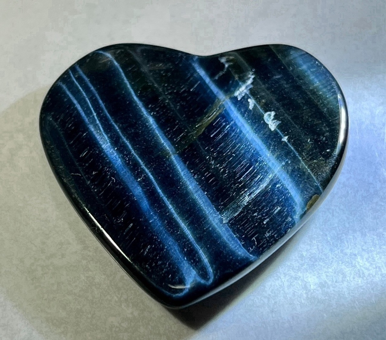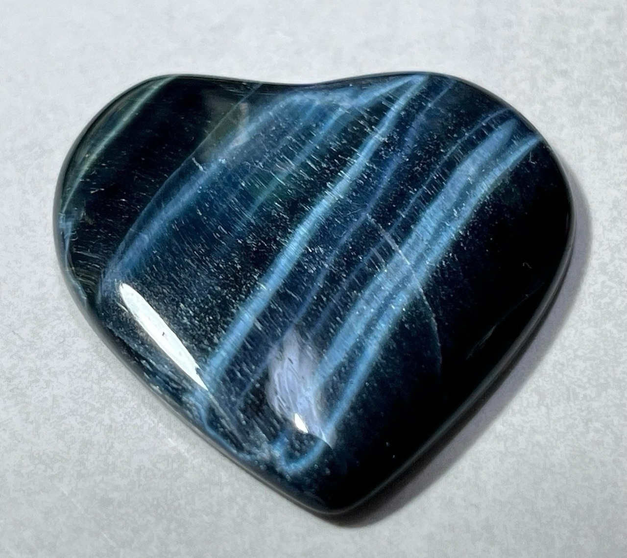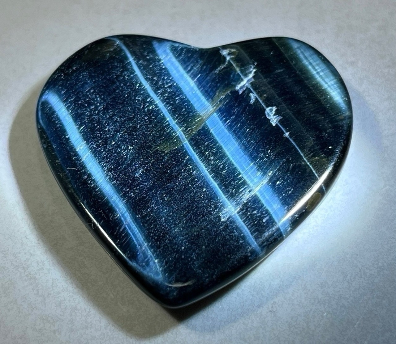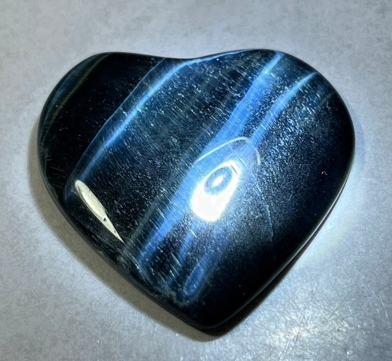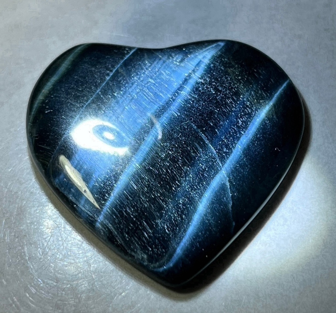 真夜中の海に月明かりが落ちているような神秘的な輝きのホークアイのハート型ルースです✨