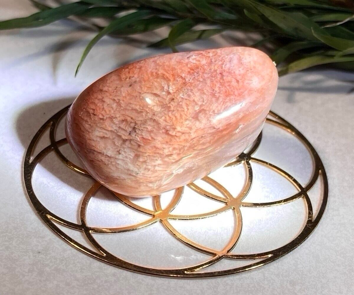 フレッシュなオレンジ色がエネルギッシュかつ独特な模様がアンティークな風合いのピーチムーンストーンのタンブルです✨