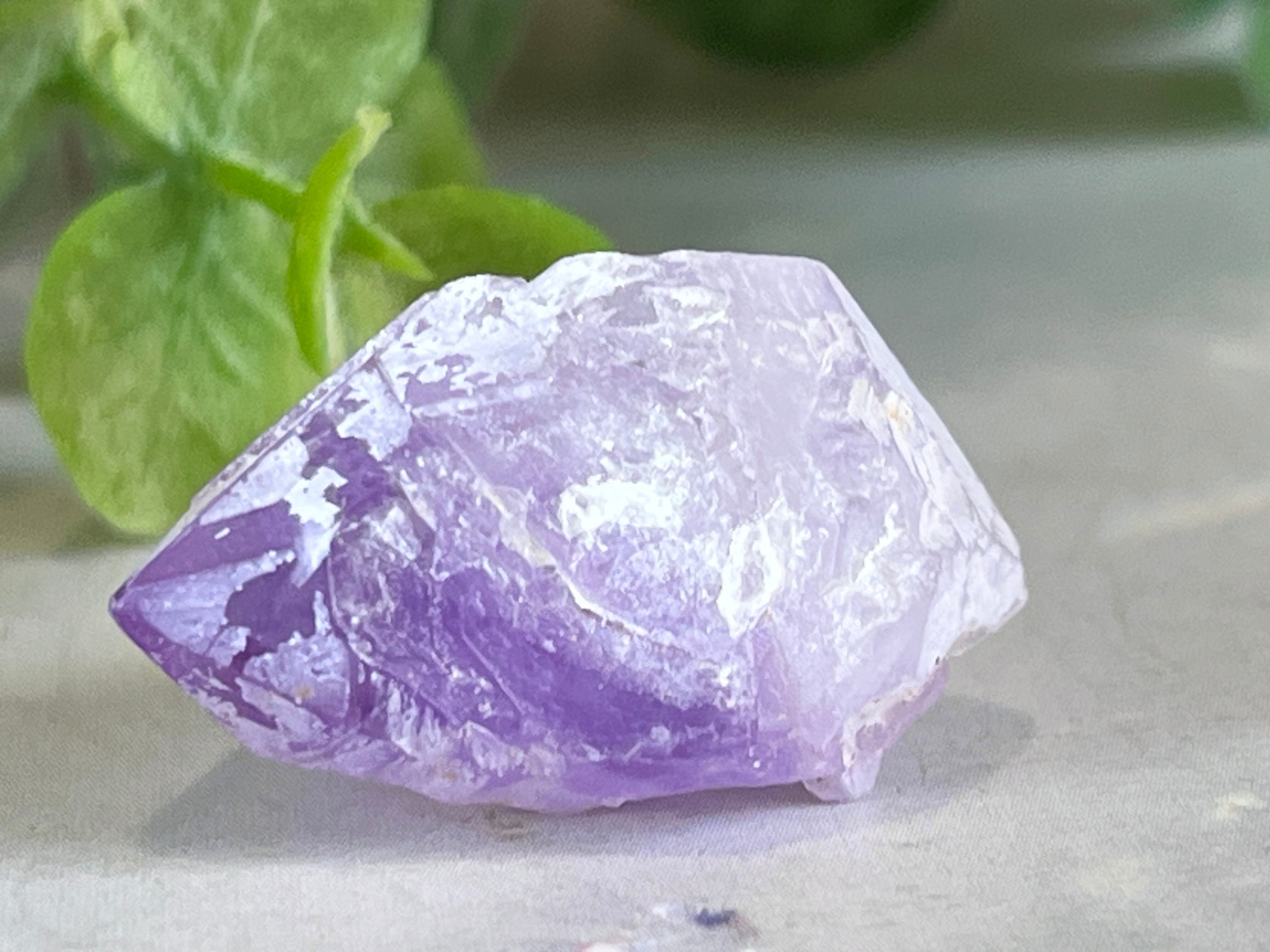 ケ―プアメジストの乳白色のミルキークォーツに比べると少し透明度のあるスリガラスのような白さが特徴です。