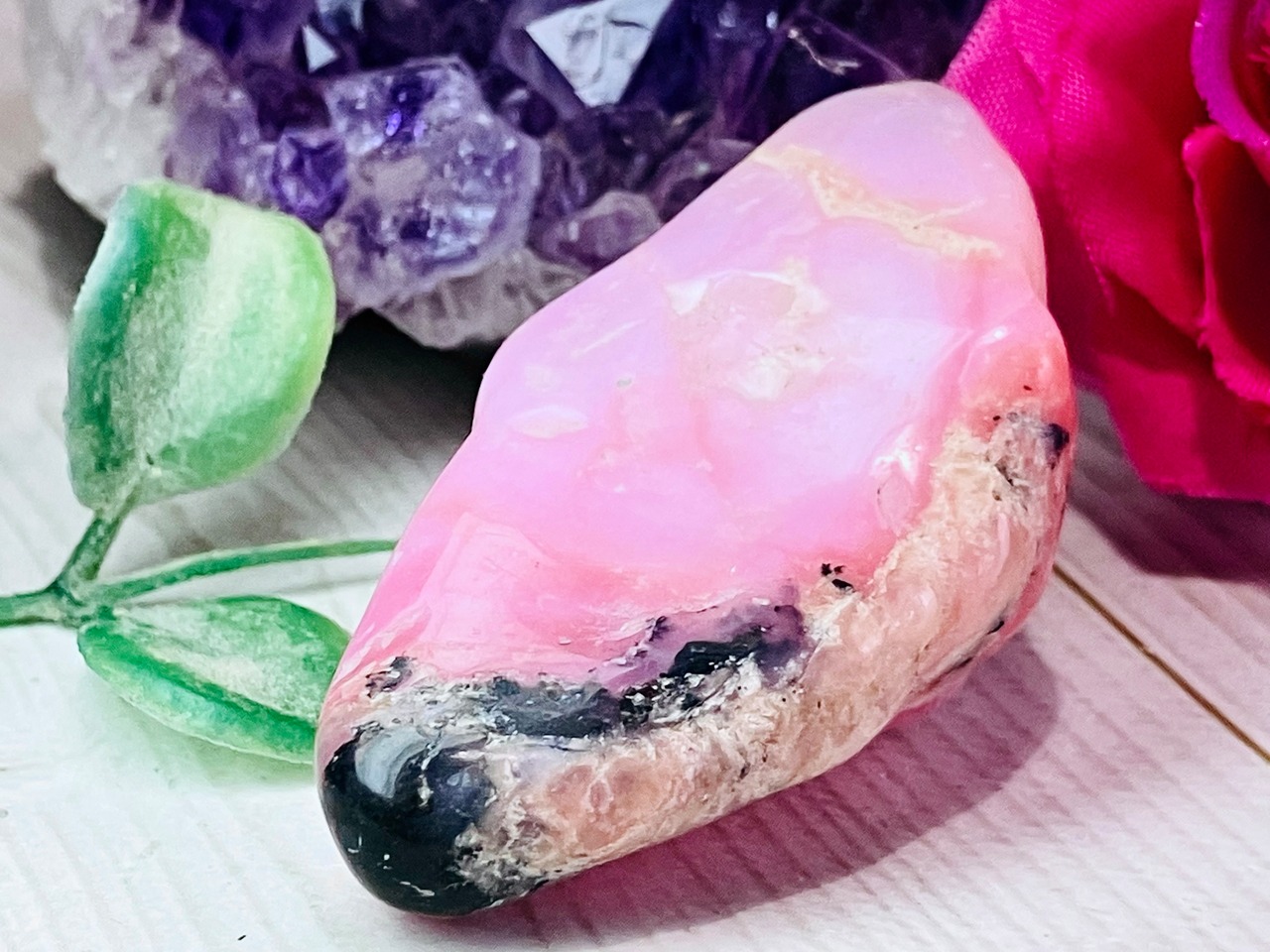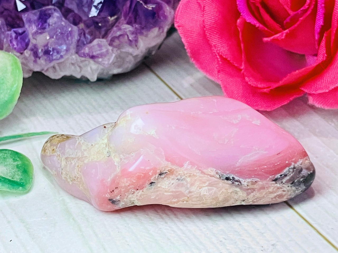 それだけでも十分に魅力的に思えるのですが、ピンクオパールは愛情に満ちた自己表現力を高め、自分自身の内在する魅力をもっと前に出せるようにサポートしてくれます。