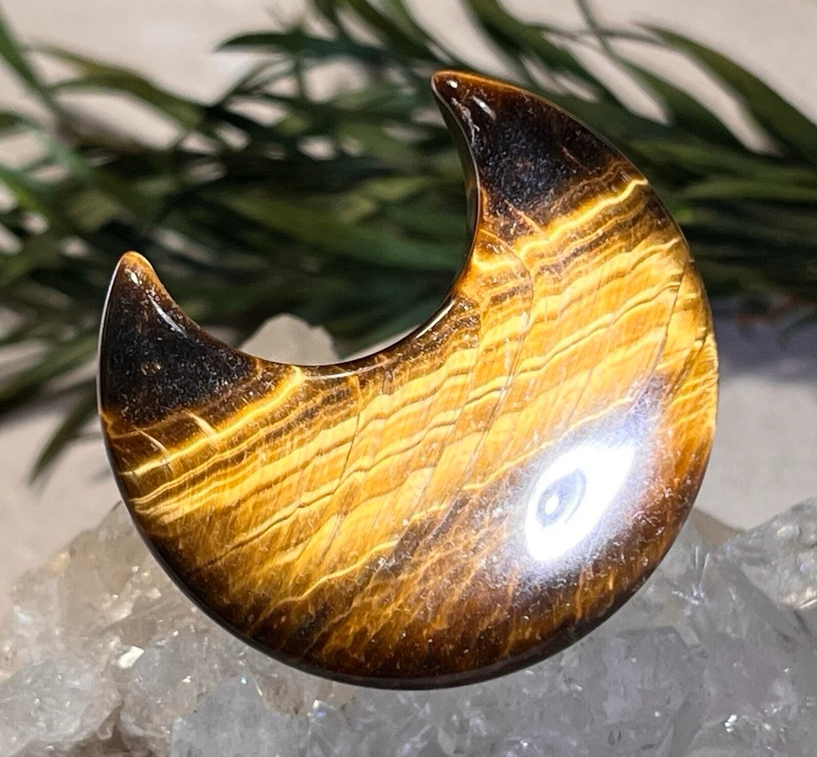 光を当てる角度によって側面に美しいシラー効果が確認できるタイガーアイのムーン形タンブルです✨