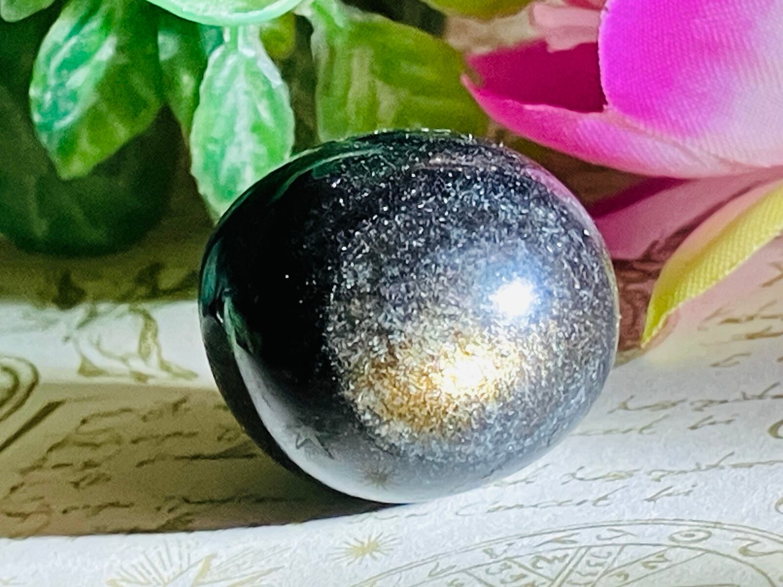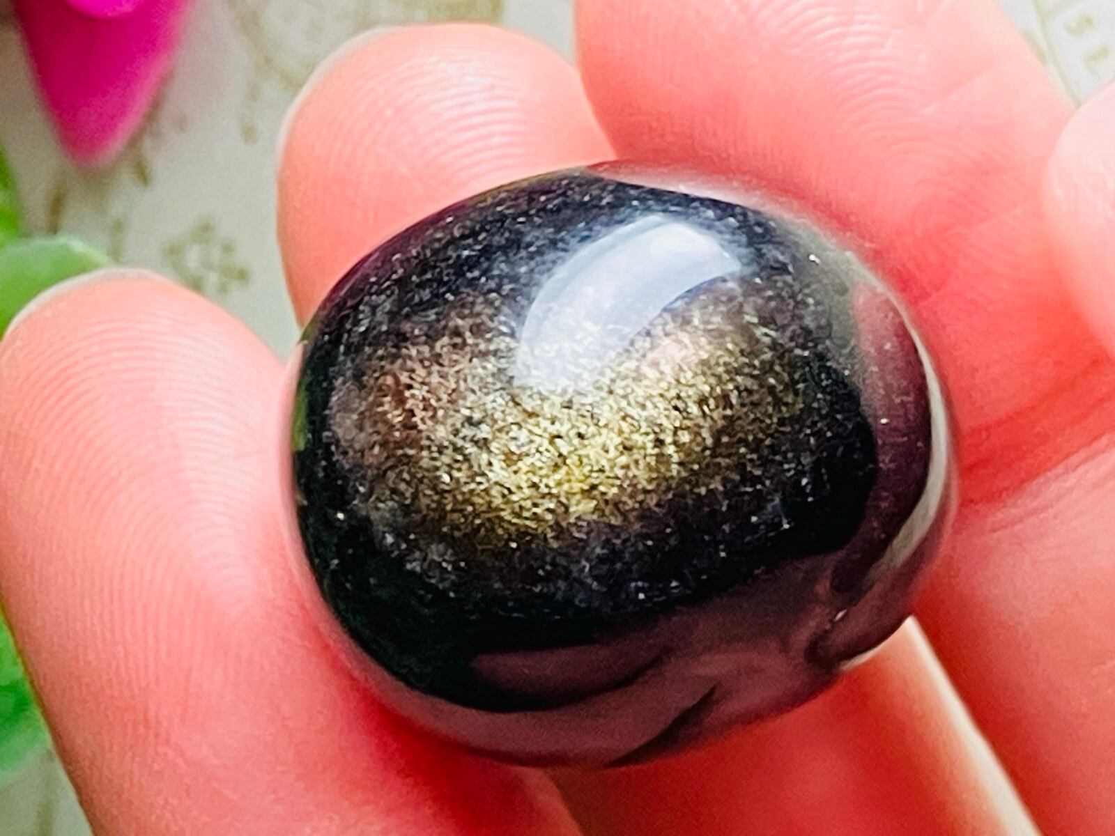 金粉を塗したようなゴールデンオブジディアンのアイ・ストーン(天眼石)タンブルです✨