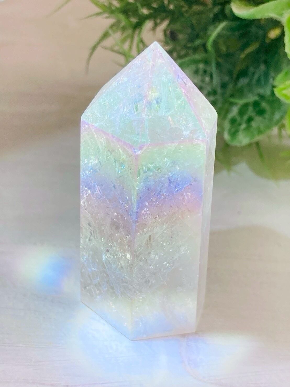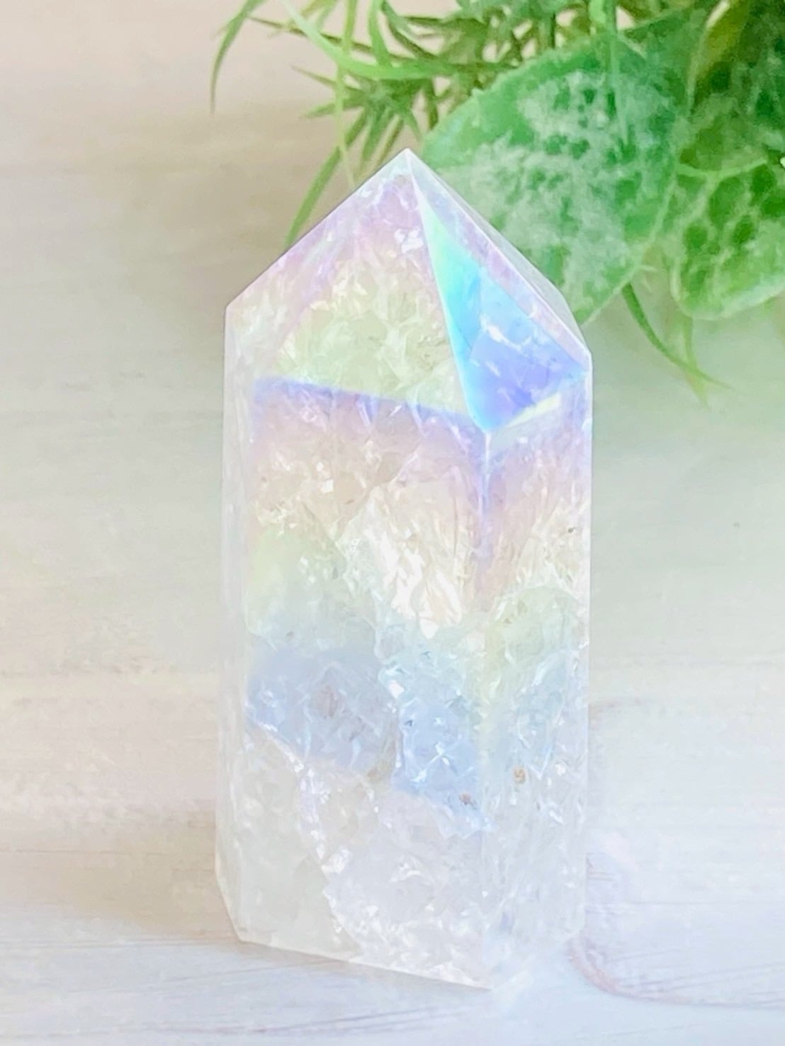 七色の夢໒꒱✨ レインボーオーラ 水晶 クリスタル ポイント 原石 ポリッシュ