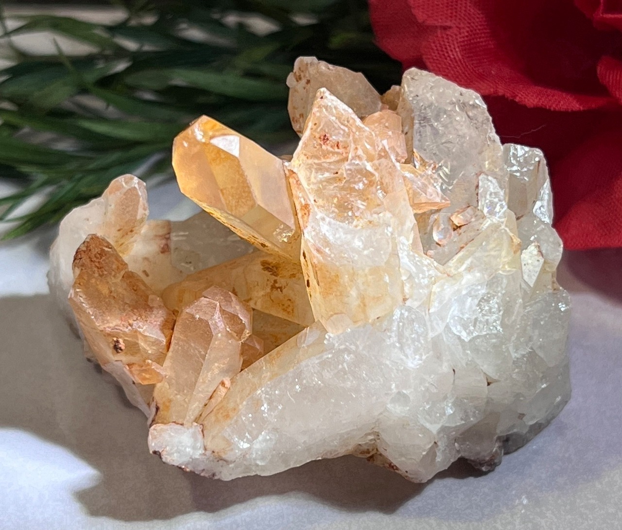 ヘマタイトの付着によりお色がサンセットカラーのタンジェリンクォーツのクラスターです(*'͜' )⋆*