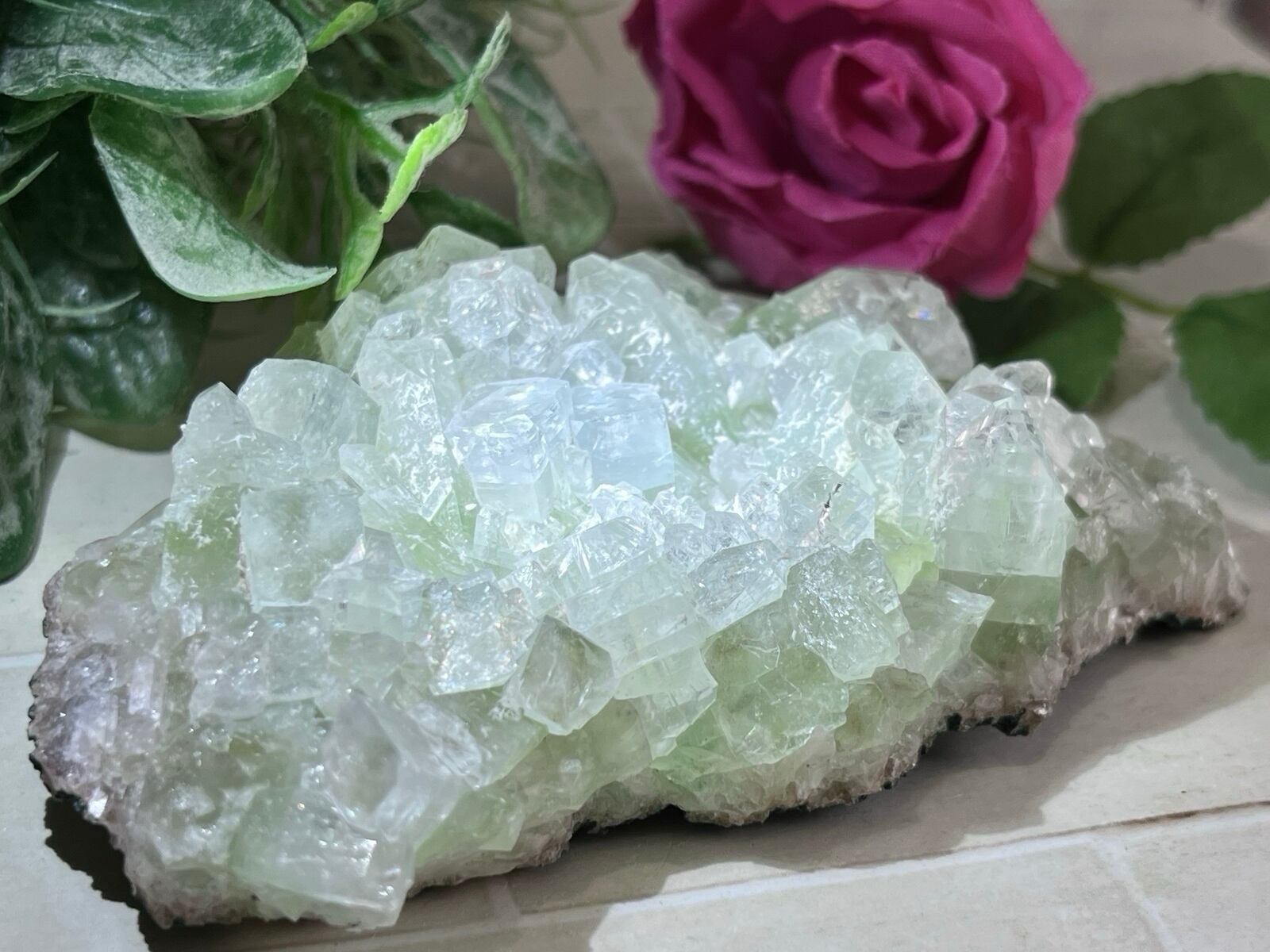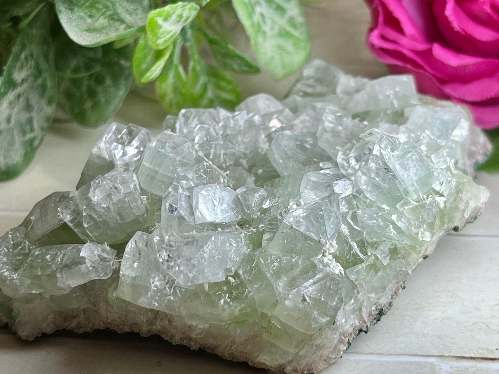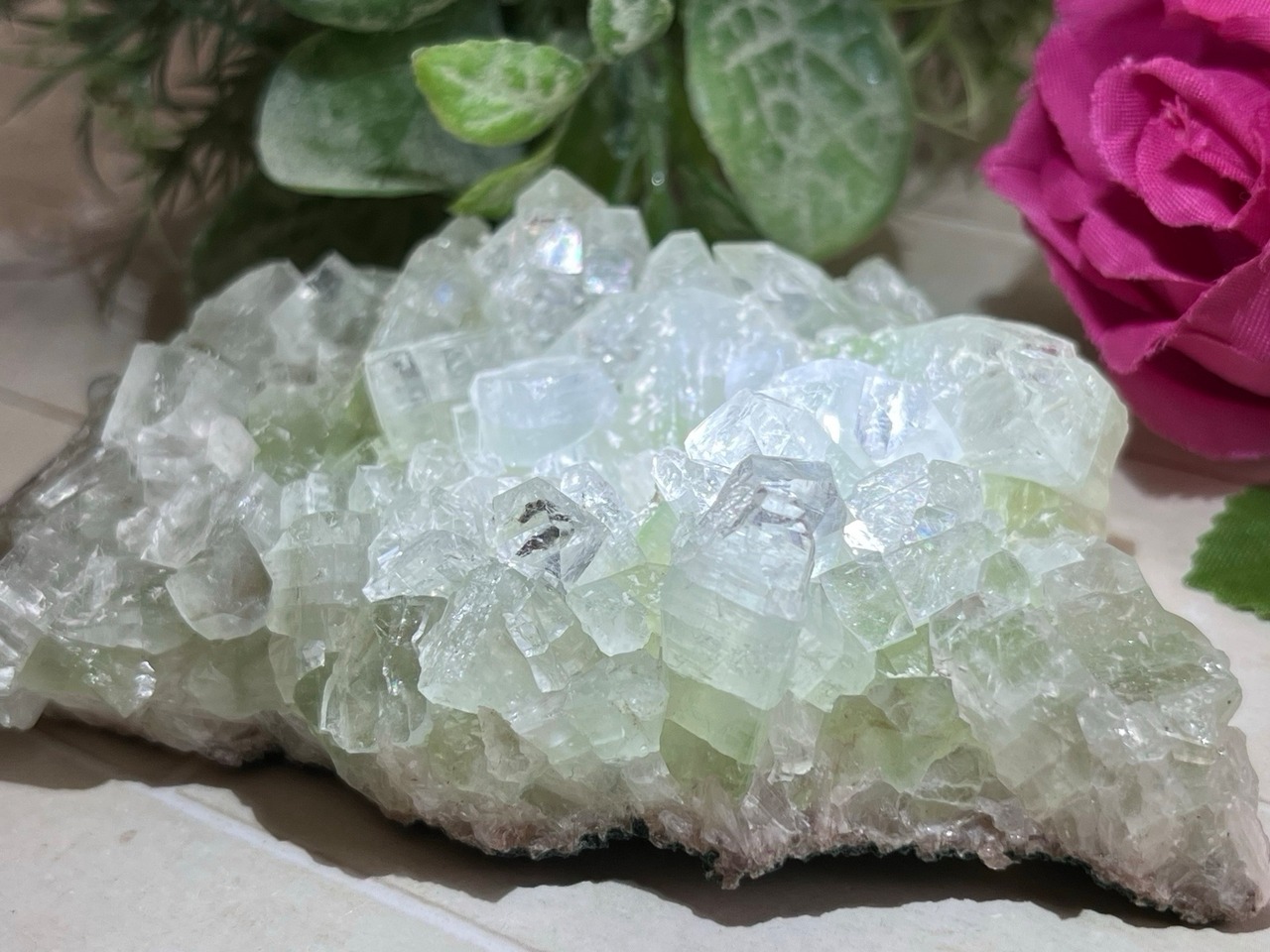 至る所で万華鏡のようなレインボーが煌めくインド産のグリーンアポフィライトのクラスターです˚✧₊⁎