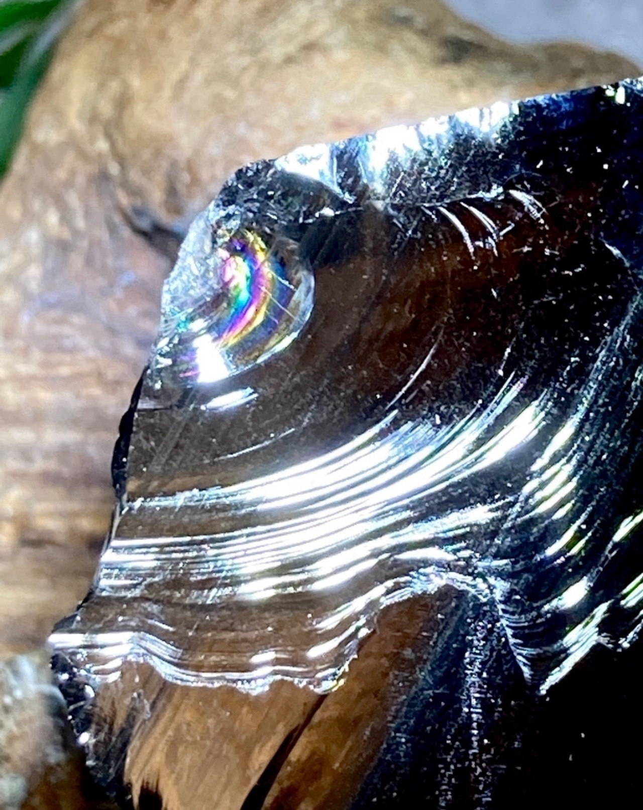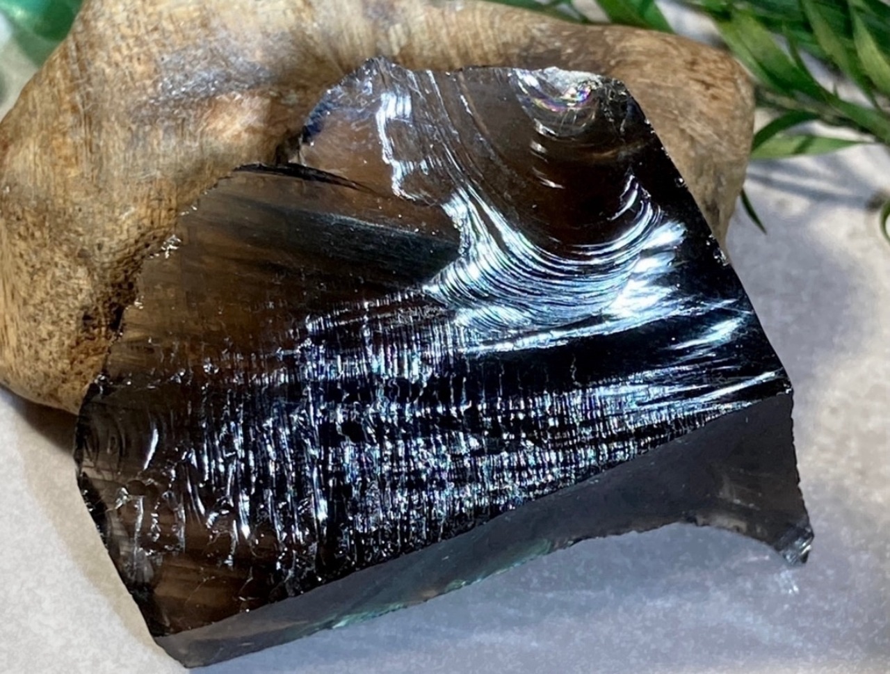 こちらはライトを当てる角度によって美しいレインボーが見られるミッドナイトオブジディアン原石です✨