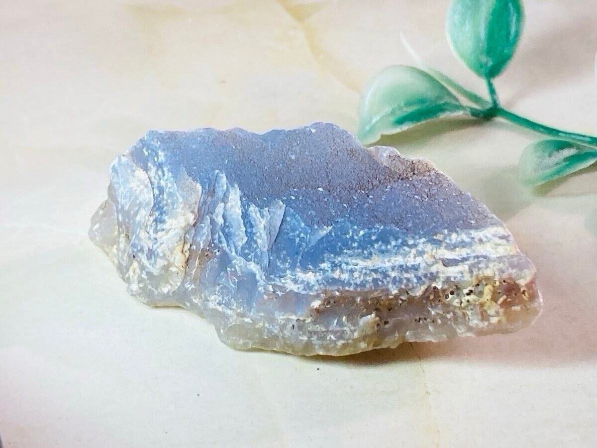 ひんやりとした風合いで落ち着いた雰囲気を醸し出すブルーカルセドニーのラフストーンです✨