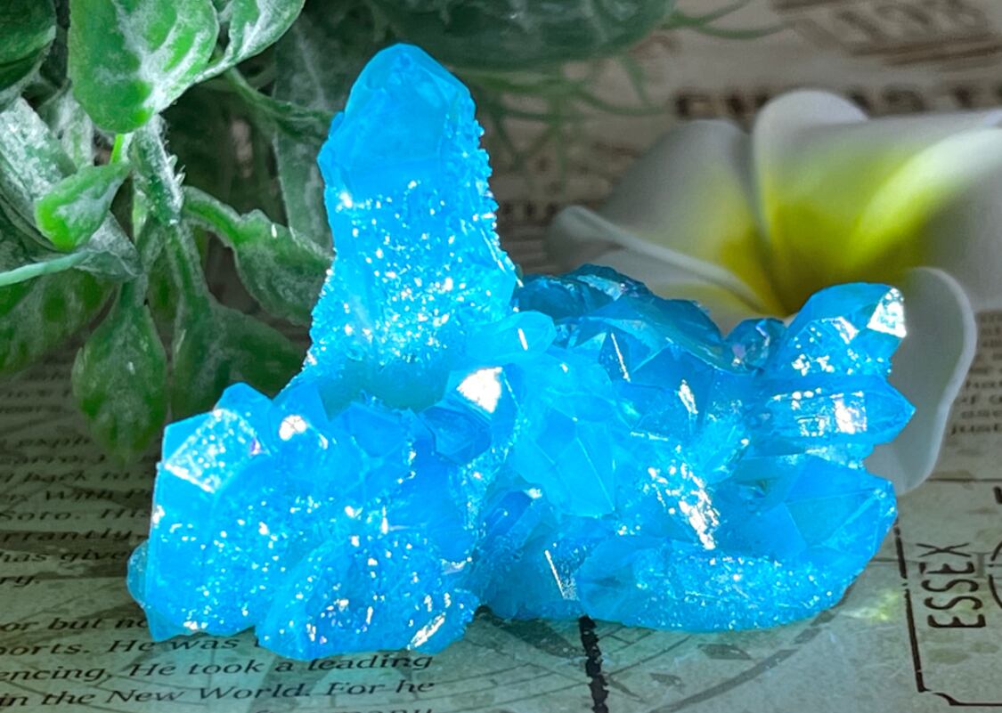 天然の水晶にイオン化した金属の蒸気を添加(蒸着)させた人工物になりますが、自然の物同士を錬金術的な組み合わせという事で、本来の水晶のパワーに上乗せし強化させてあると思われているようで、海外のヒーラーに好まれている石でもあります。