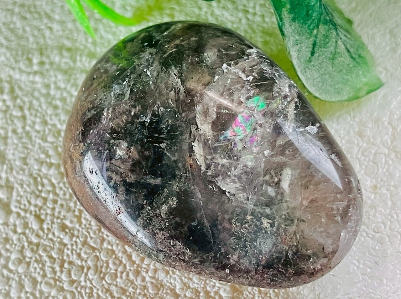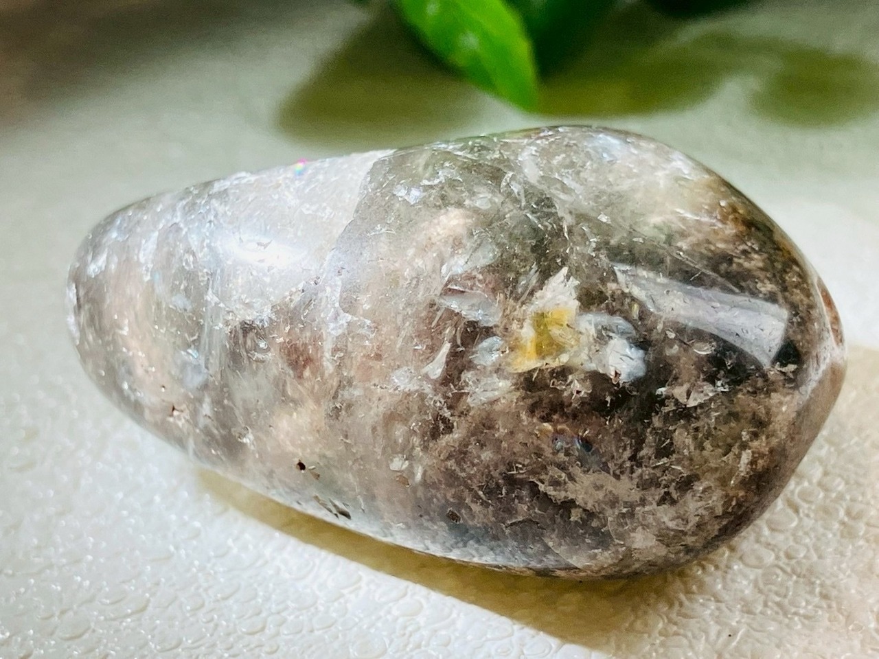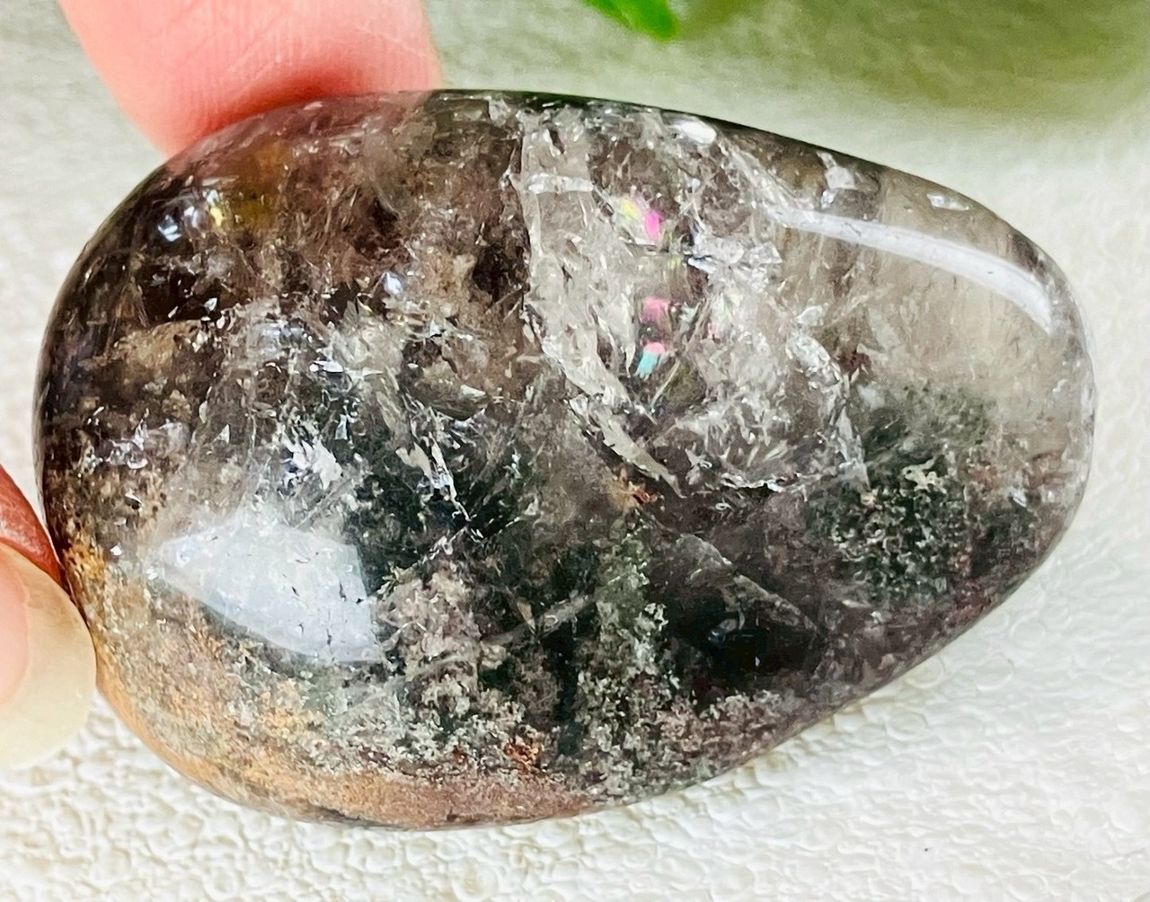 レインボー✨ ガーデンクォーツ 庭園水晶 苔入り水晶 クリスタル 握り石