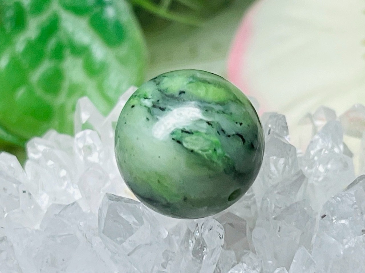 蓬色のマーブル模様の日高翡翠の穴あき丸玉です❁⃘*.゜