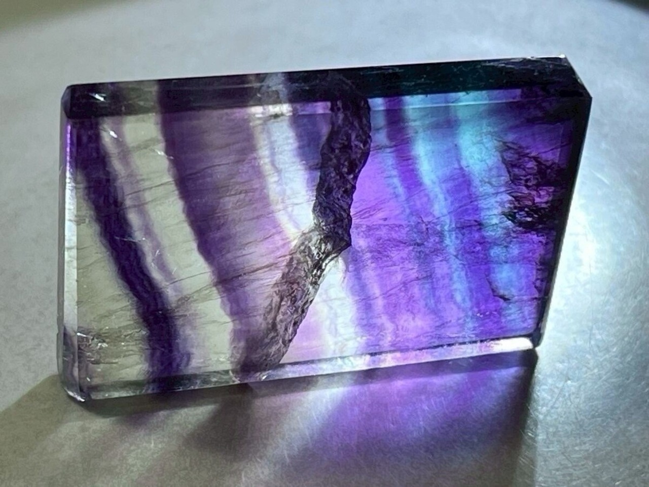 パープルとエメラルドグリーンにクリアのグラデーションが幻想的なフローライトマルチカラーのプレートです❁⃘*.゜