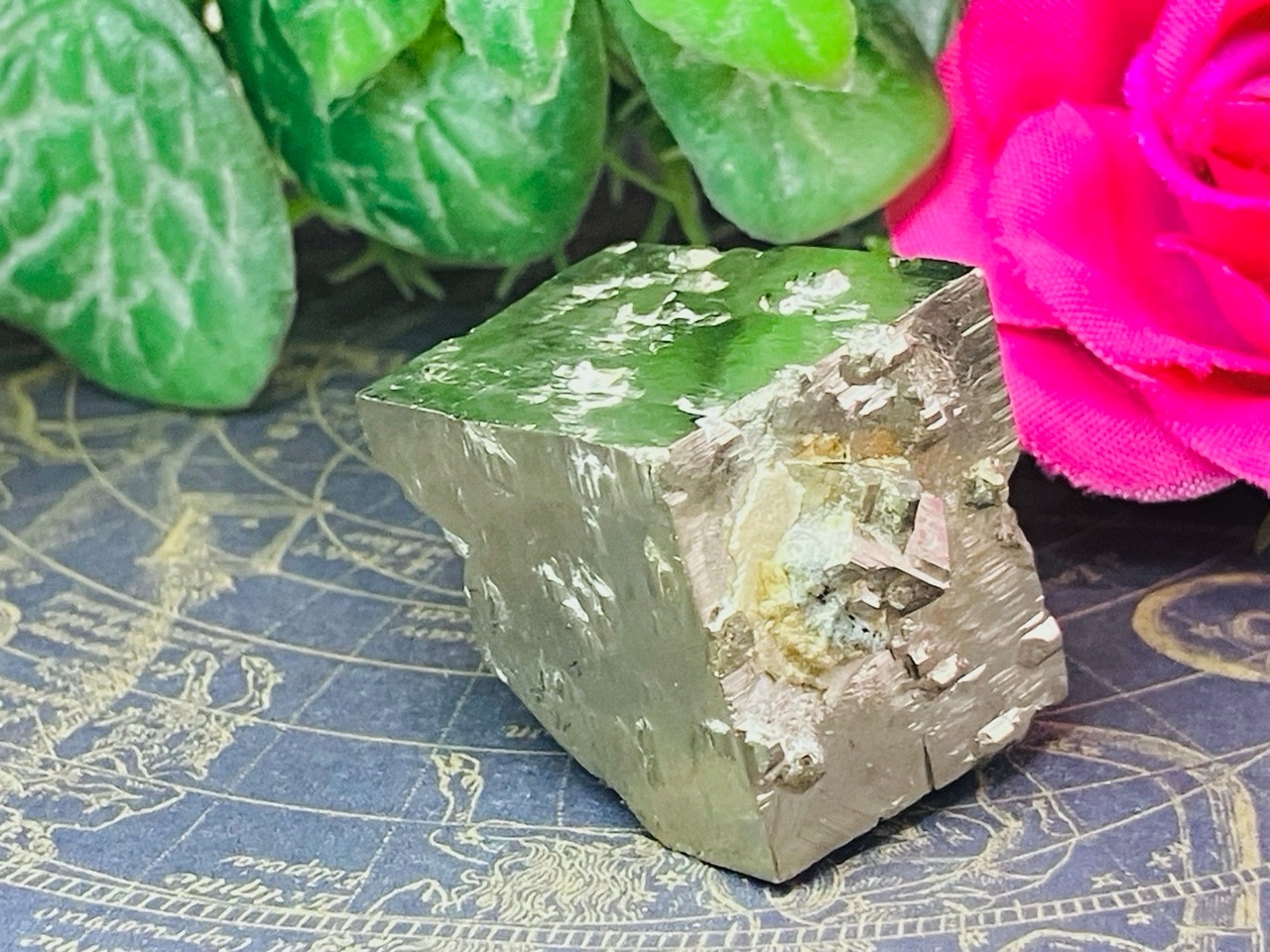 このようにパイライトは形にも意味があり、綺麗なキューブは安定力がとても強く、心身のバランスをとるのに有用です。