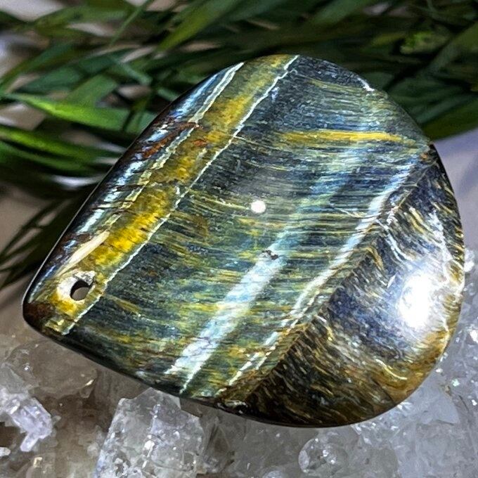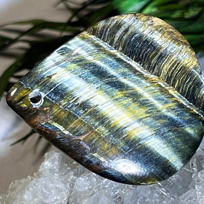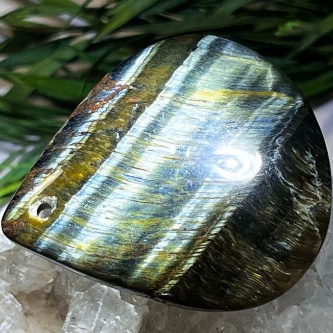 タイガーアイにあまり出回らないブルーのホークアイが混じりあったタイプのミックスタイガーアイ(混虎目石)の穴あきルースです✨