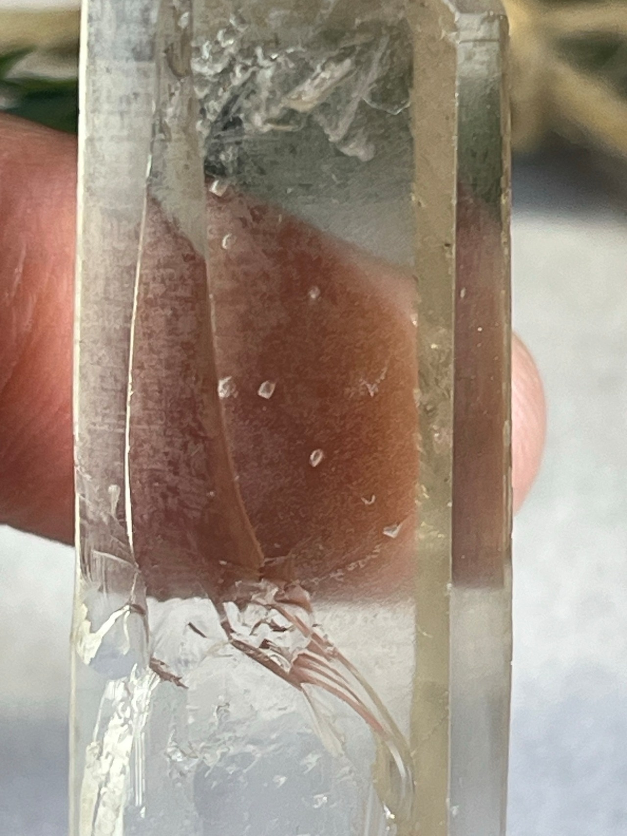 レムリアンシードクォーツには、柱面にバーコードのように見える横筋のリッジ(レムリアンリッジ)が入っており、同時にレコードキーパーと呼ばれる三角形の刻印が入っていることもあります。