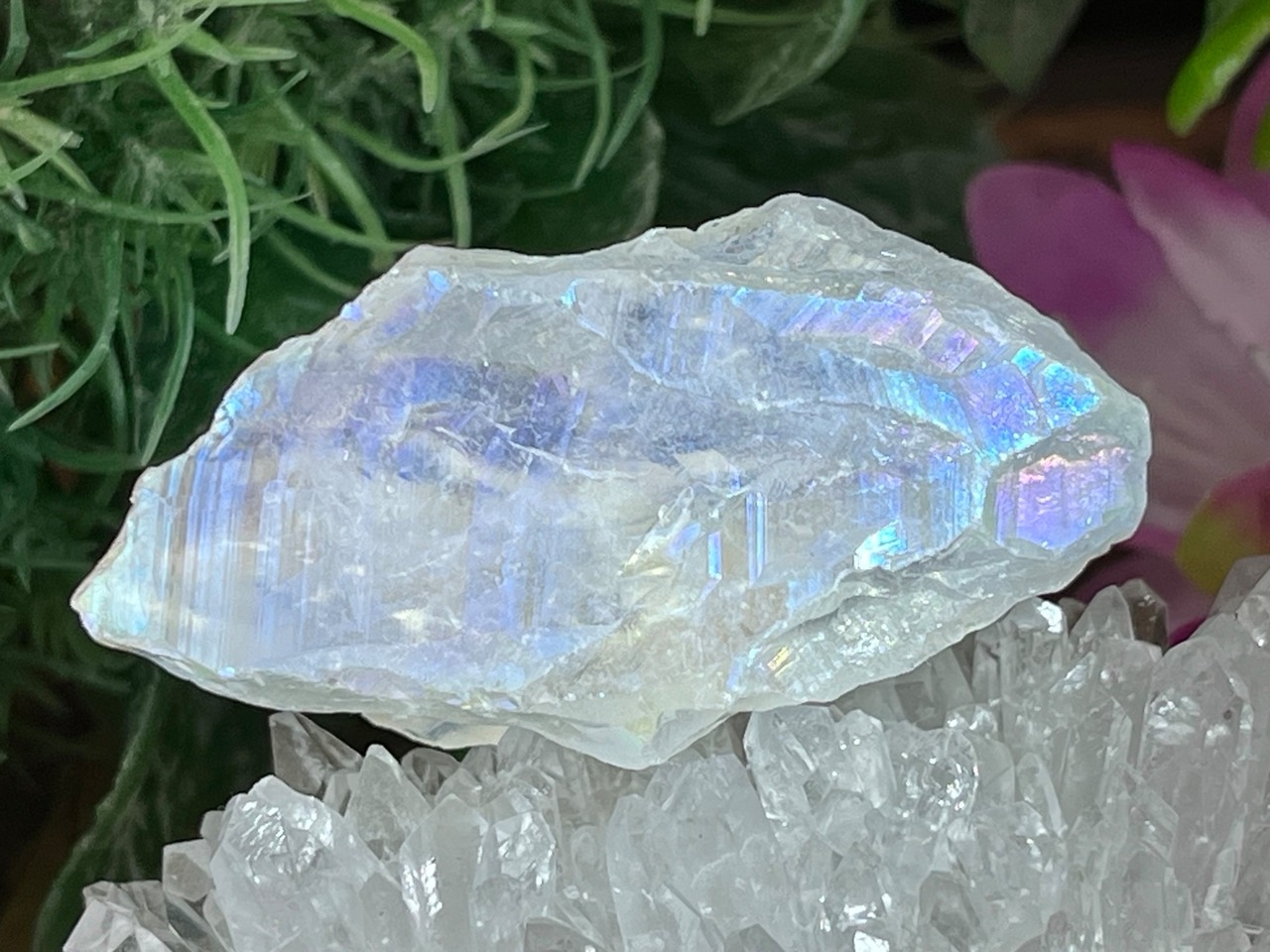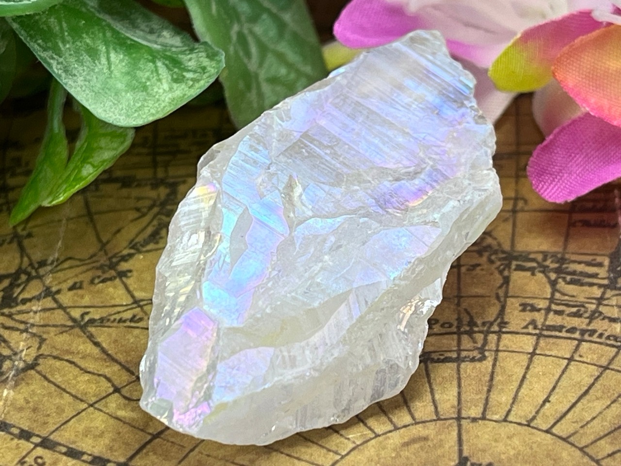 オーロラのような虹色をまとったホワイトのオーラ水晶ラフストーンです- ̗̀꒰ঌ໒꒱ ̖́-