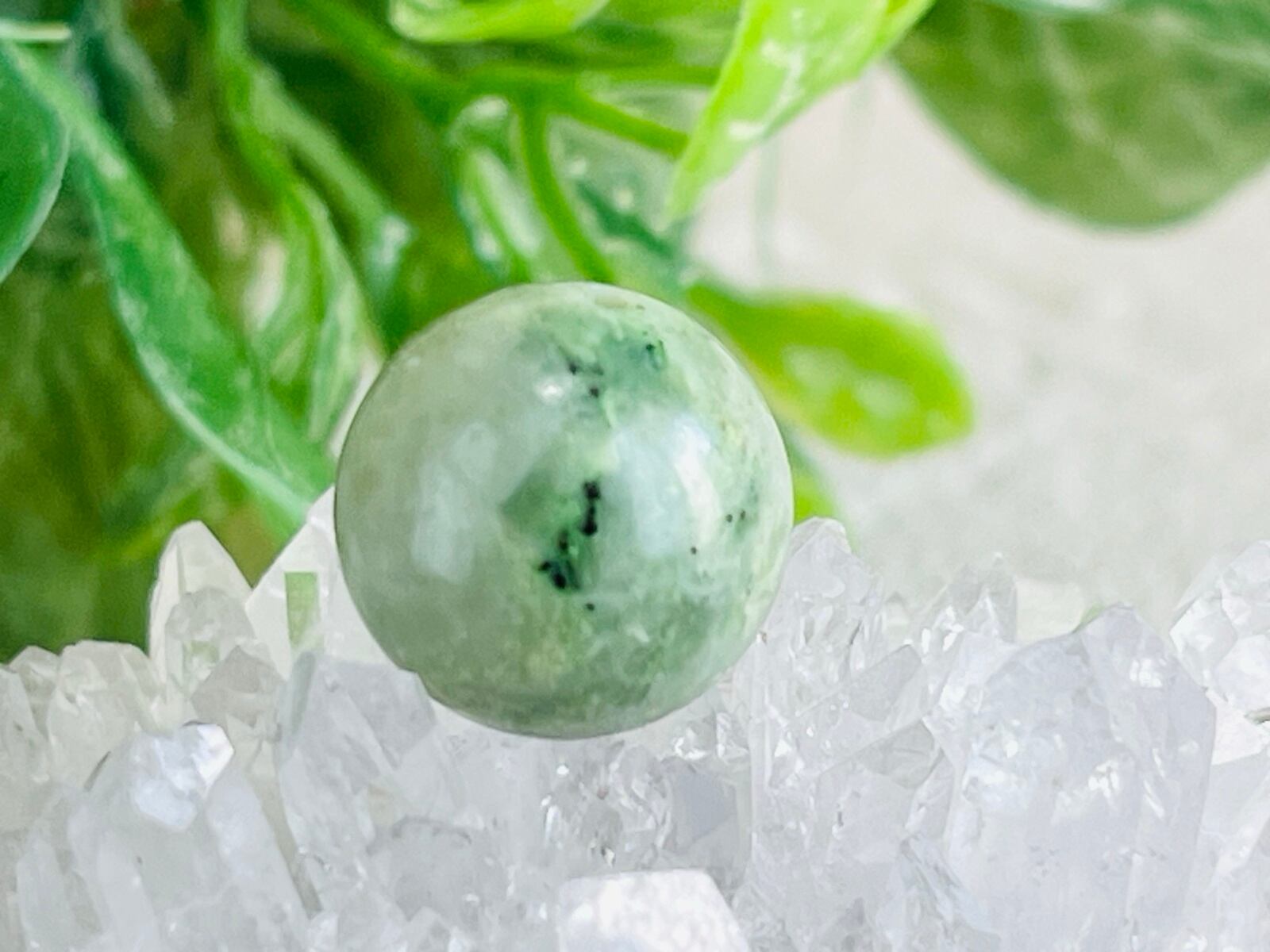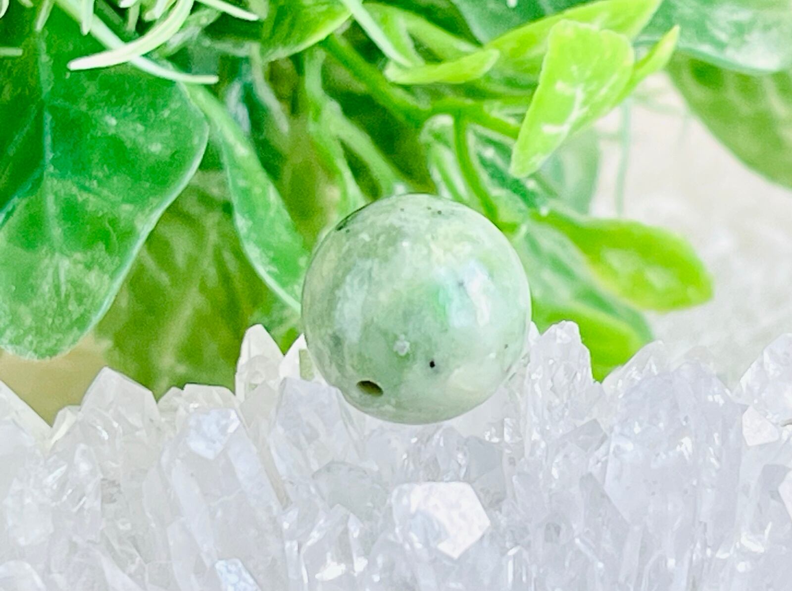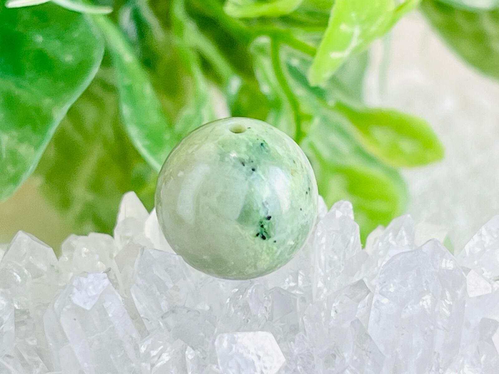 蓬色のマーブル模様の日高翡翠の穴あき丸玉です❁⃘*.゜