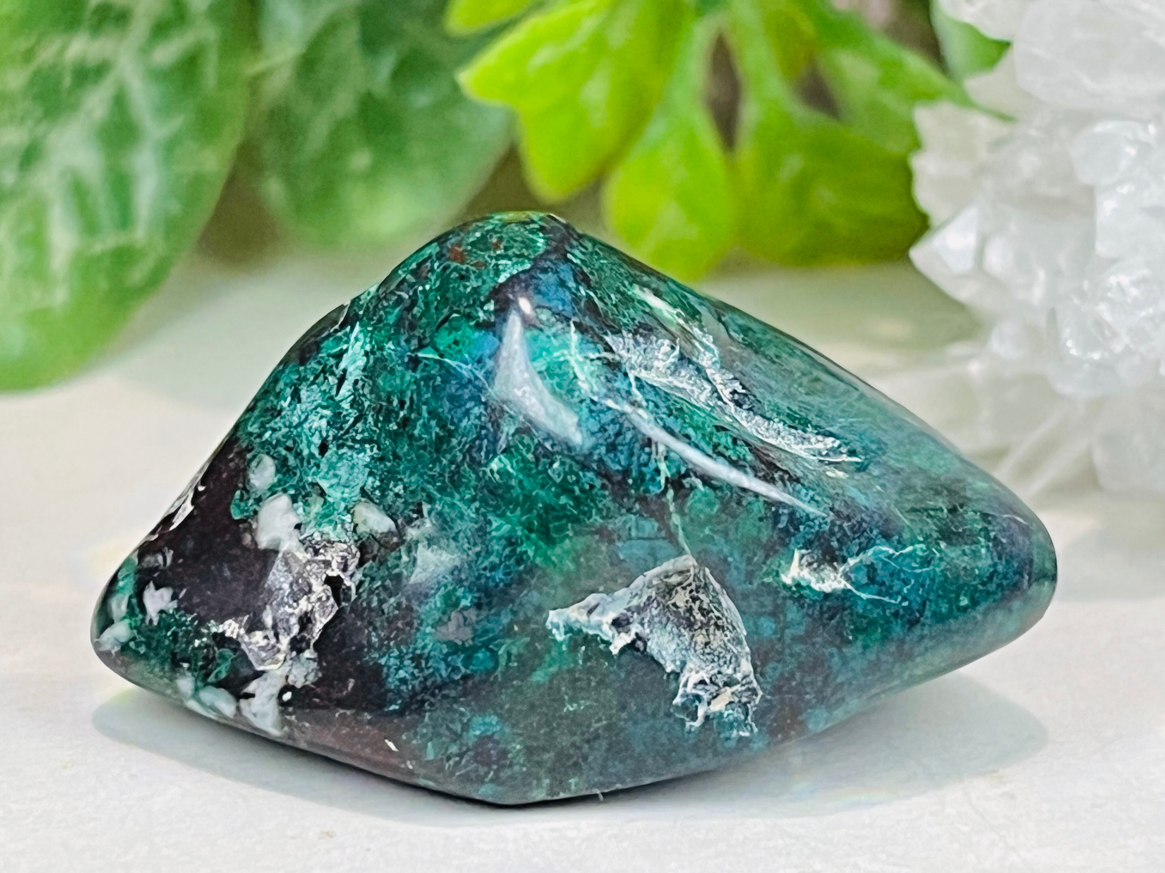 森を凝縮したような模様が特徴のクリソコラのタンブルです✨