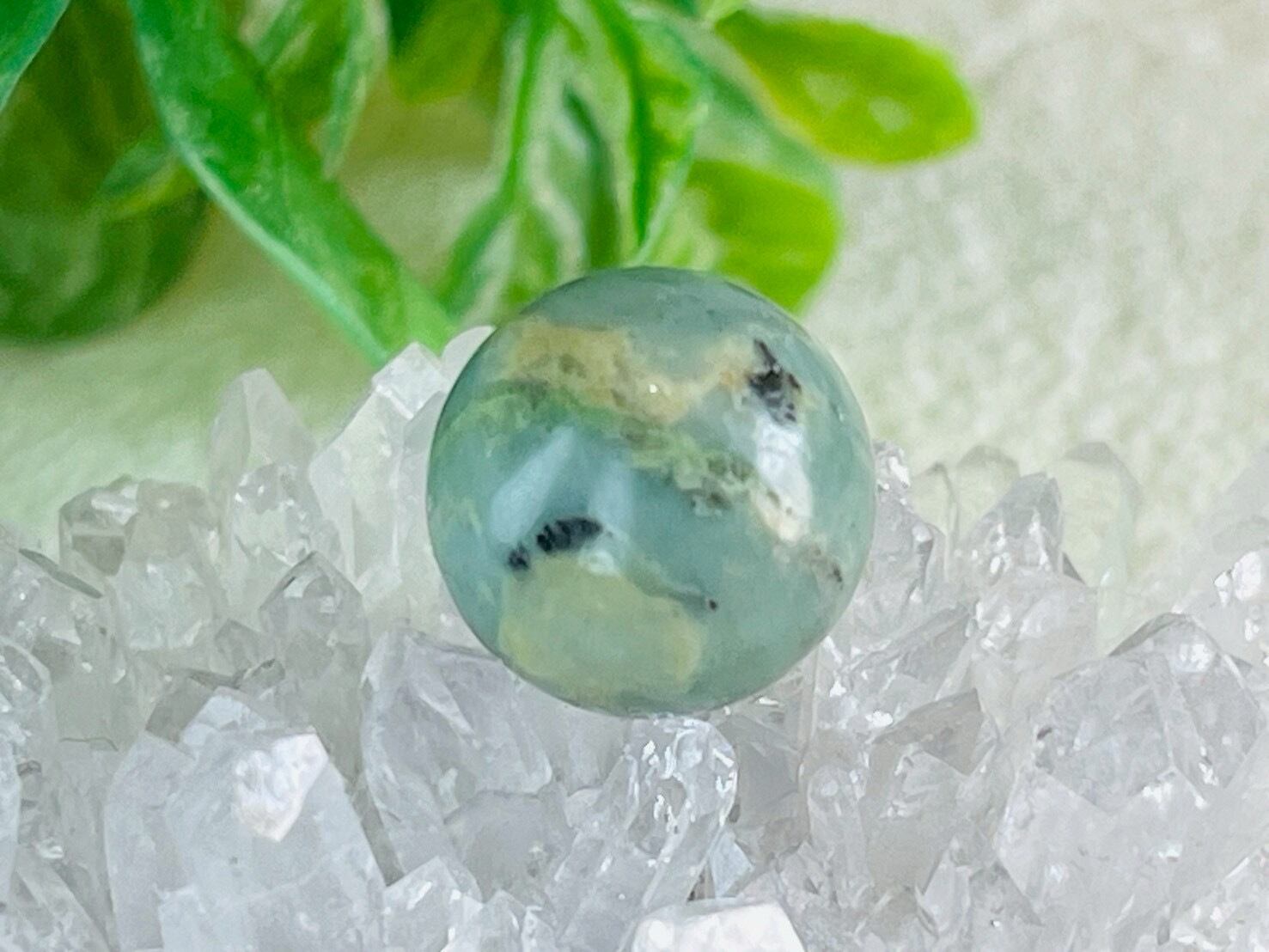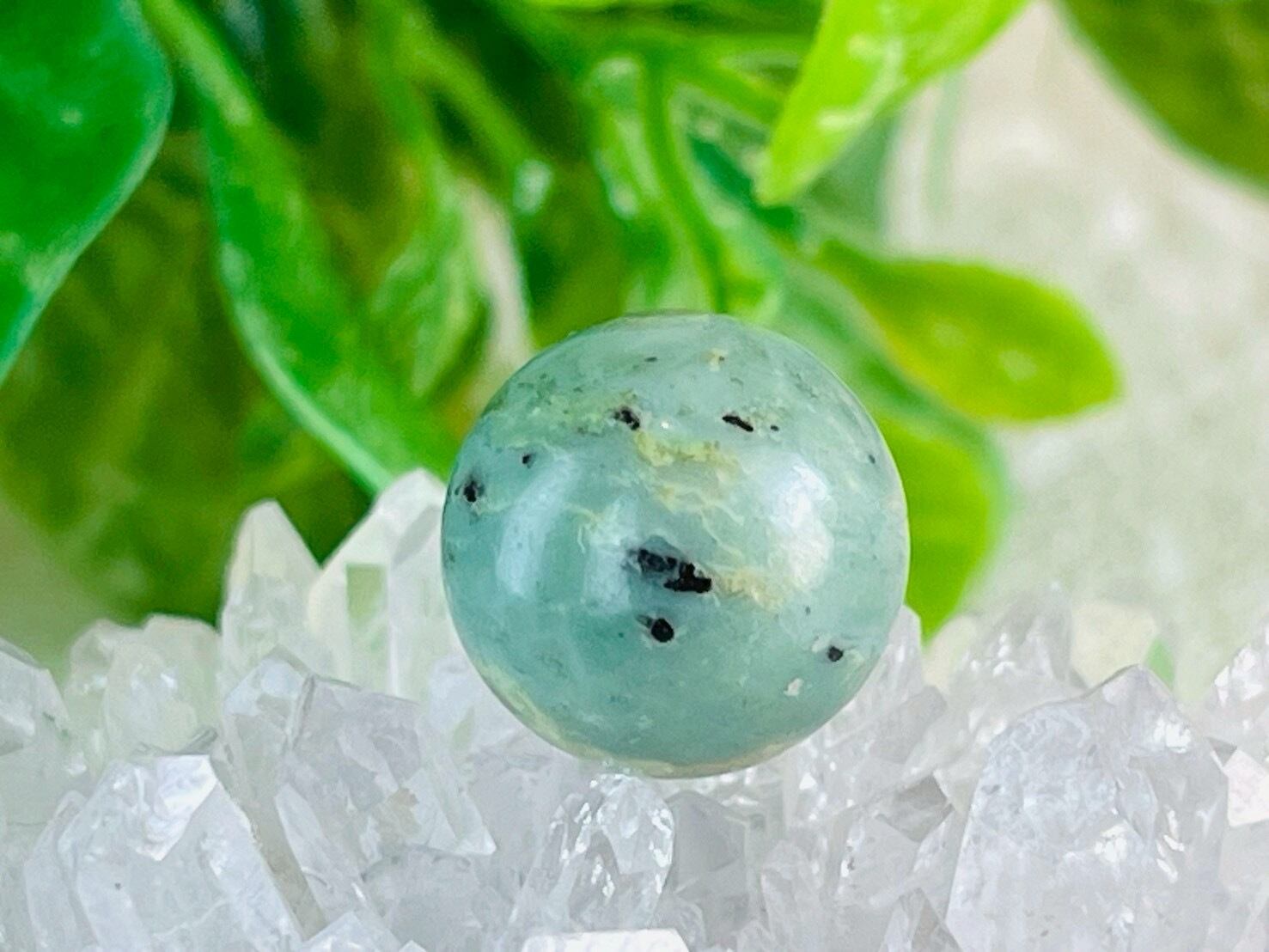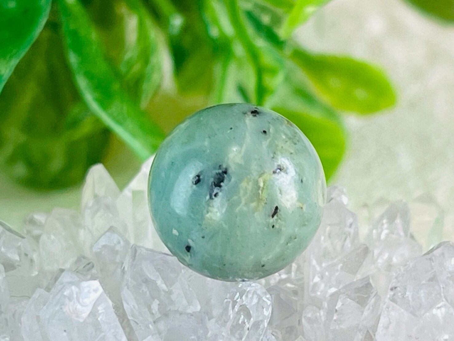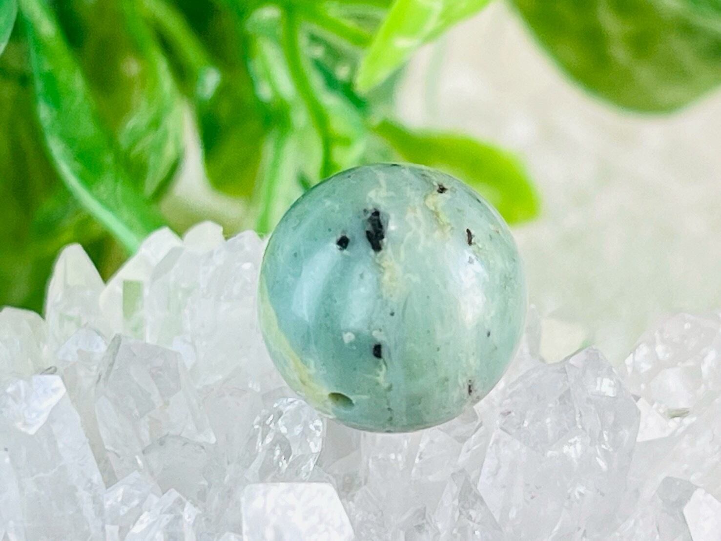 少し青みを帯びた優しい風合いの日高翡翠の穴あき丸玉です❁⃘*.゜