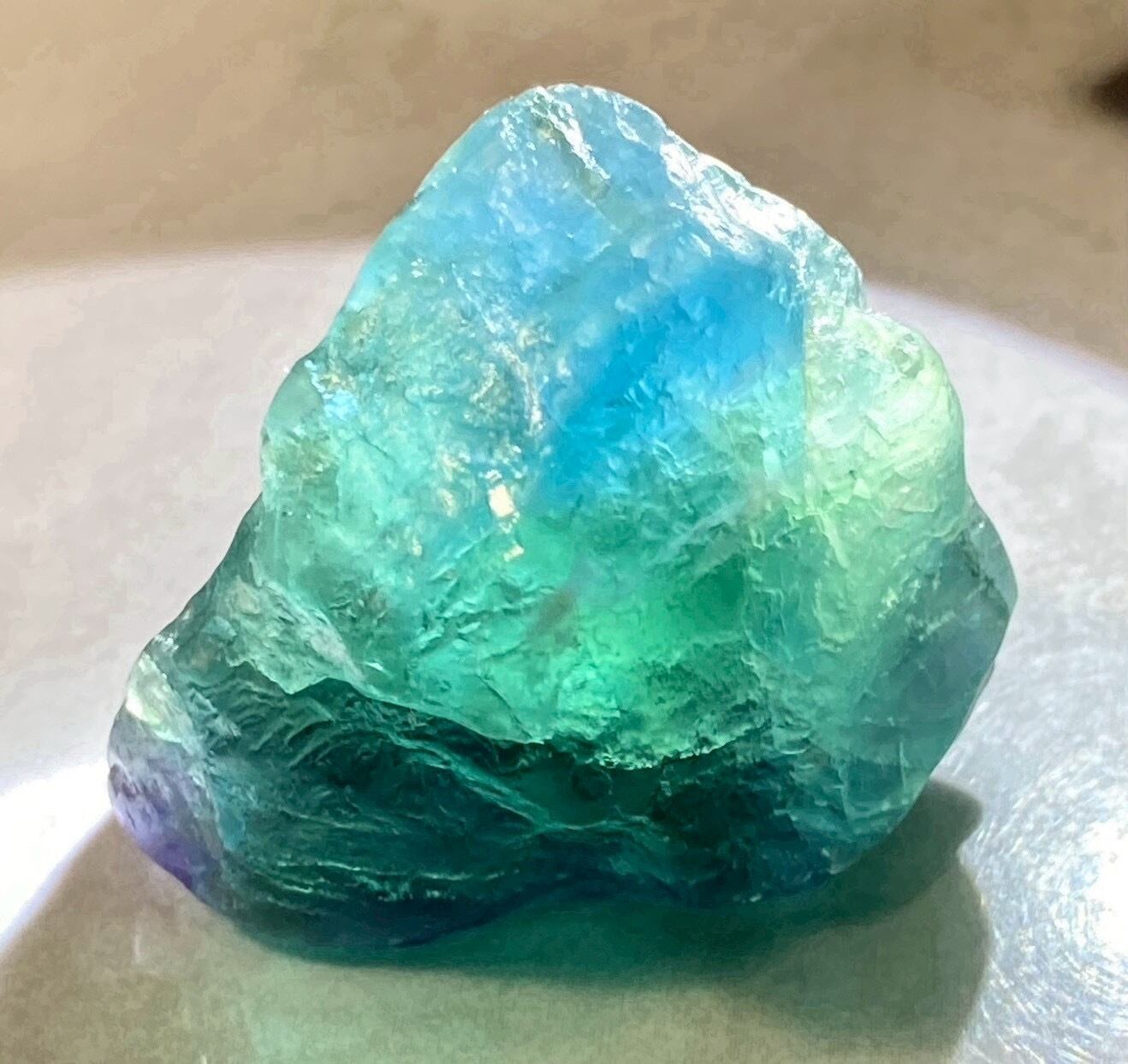 エメラルドグリーンとブルーにパープルが醸し出すグラデーションが美しいマルチカラーフローライト原石です❁⃘*.゜