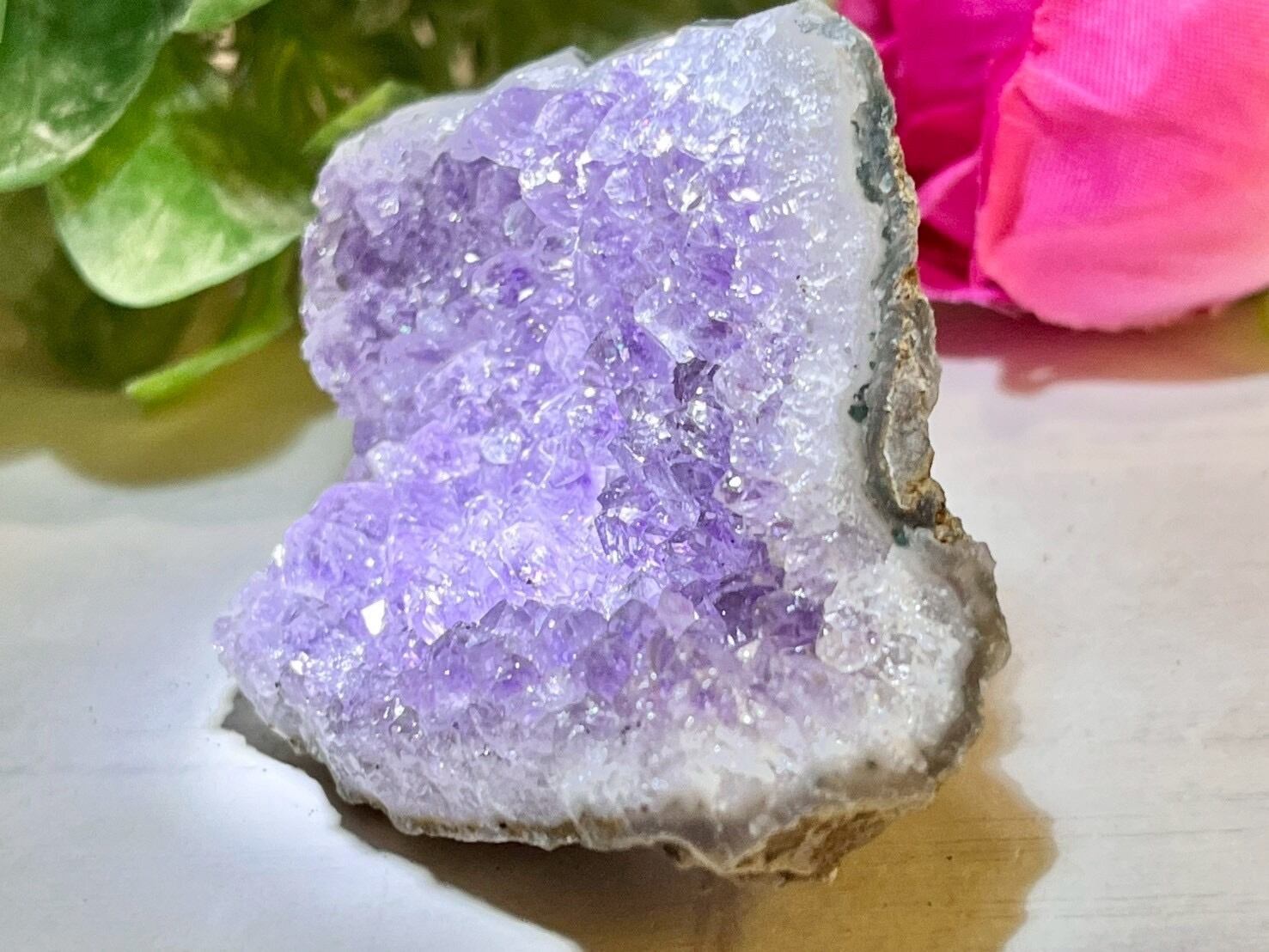 キラキラと光り輝く藤紫色のウルグアイ産のアメジストクラスターです✨