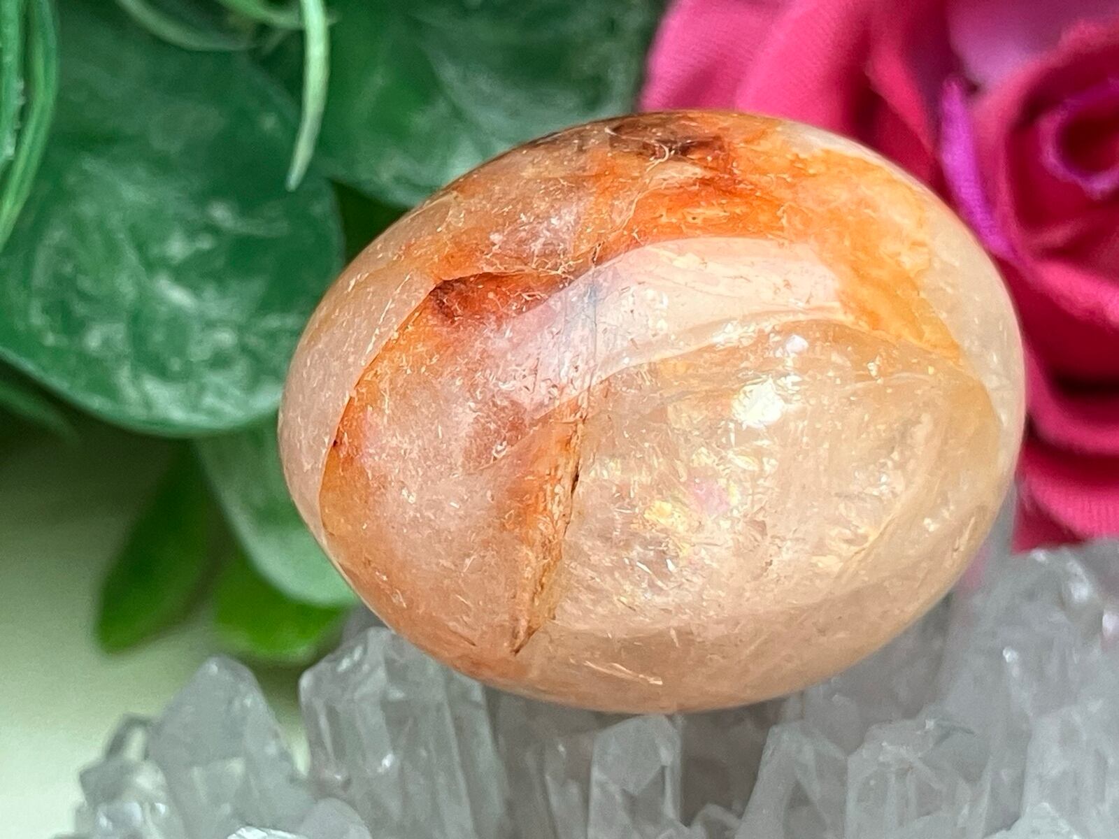 ヘマタイトイン クリスタル 虹入り 水晶 タンブル 原石
