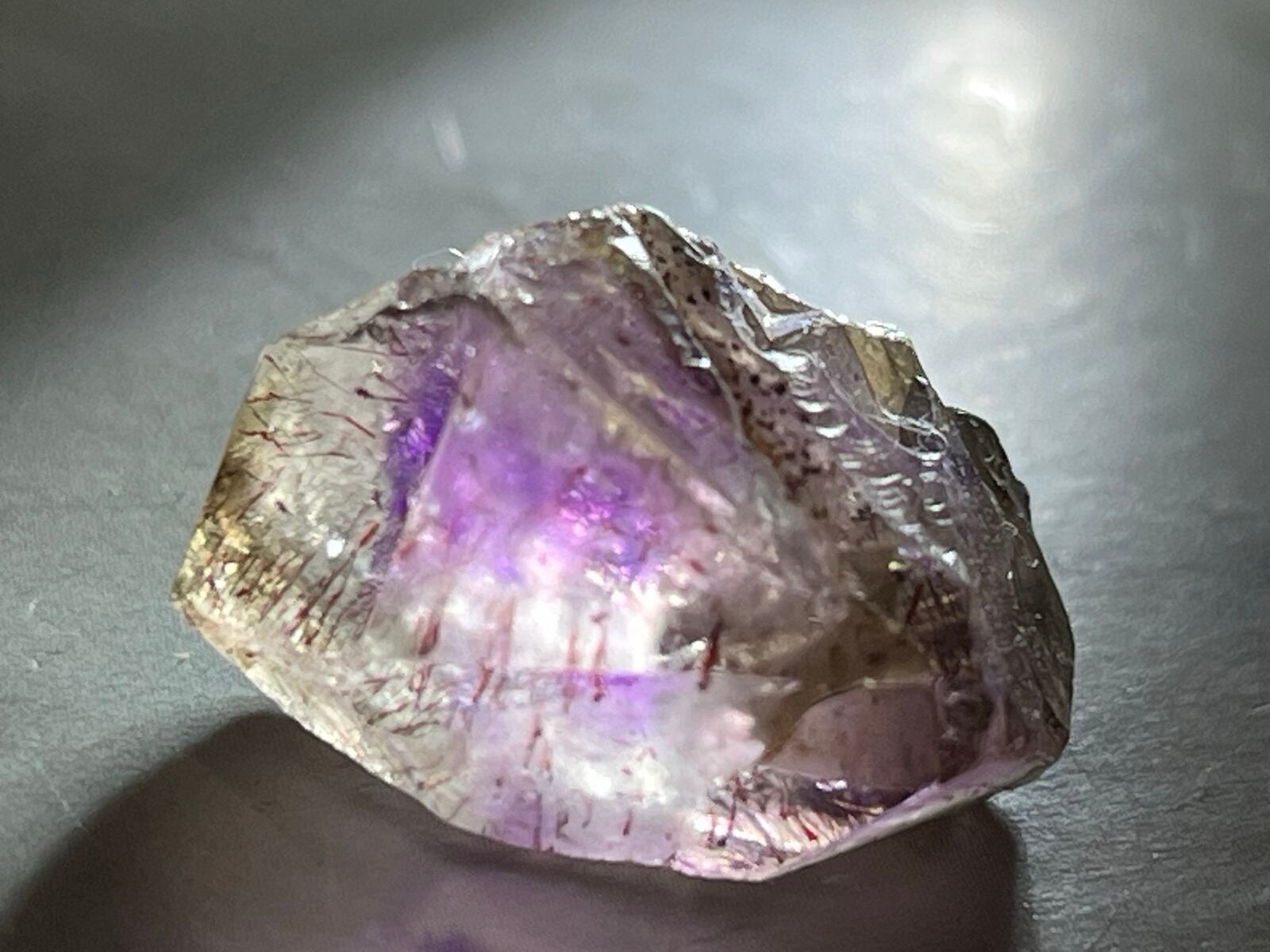 水晶の透明感、アメジストの紫、スモーキークォーツのブラウンカラーの中に内包された鉱物が見せる姿は、非常に神秘的で美しく、主となる水晶と内包物の組み合わせによってバリエーションに富んだ表情を見せてくれます。