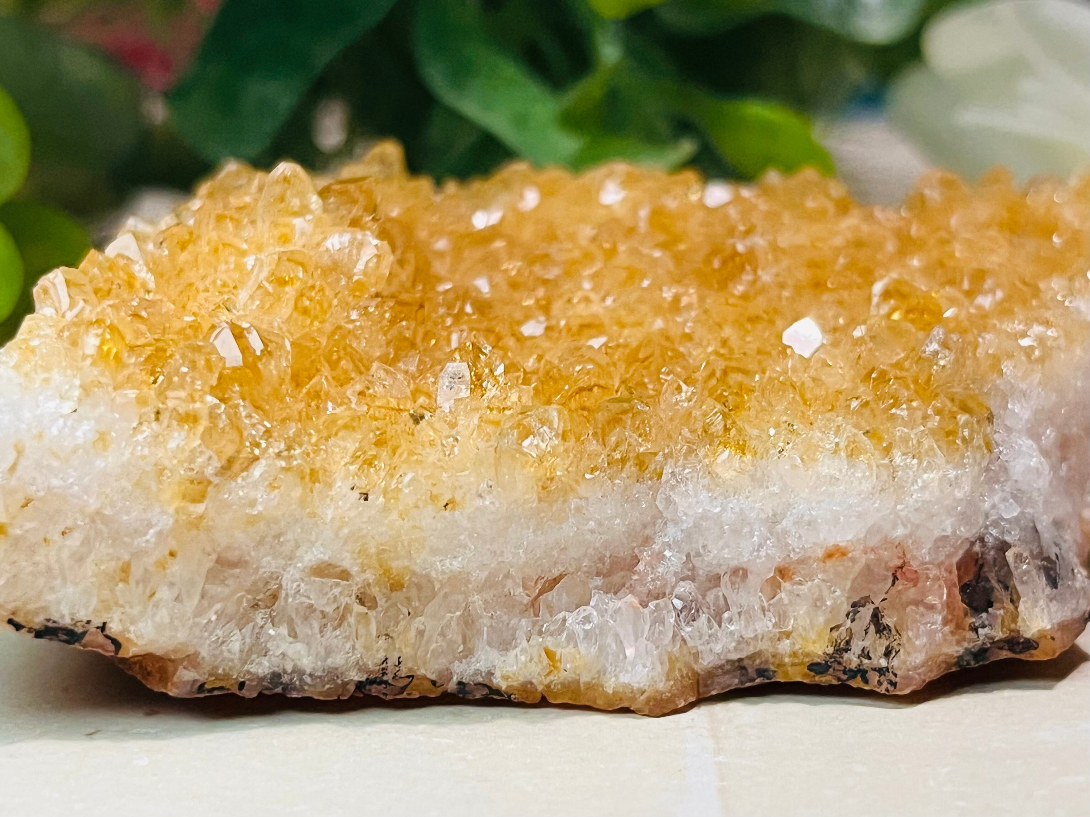 山吹色の結晶がキラキラ光るシトリンクォーツのクラスターです✨