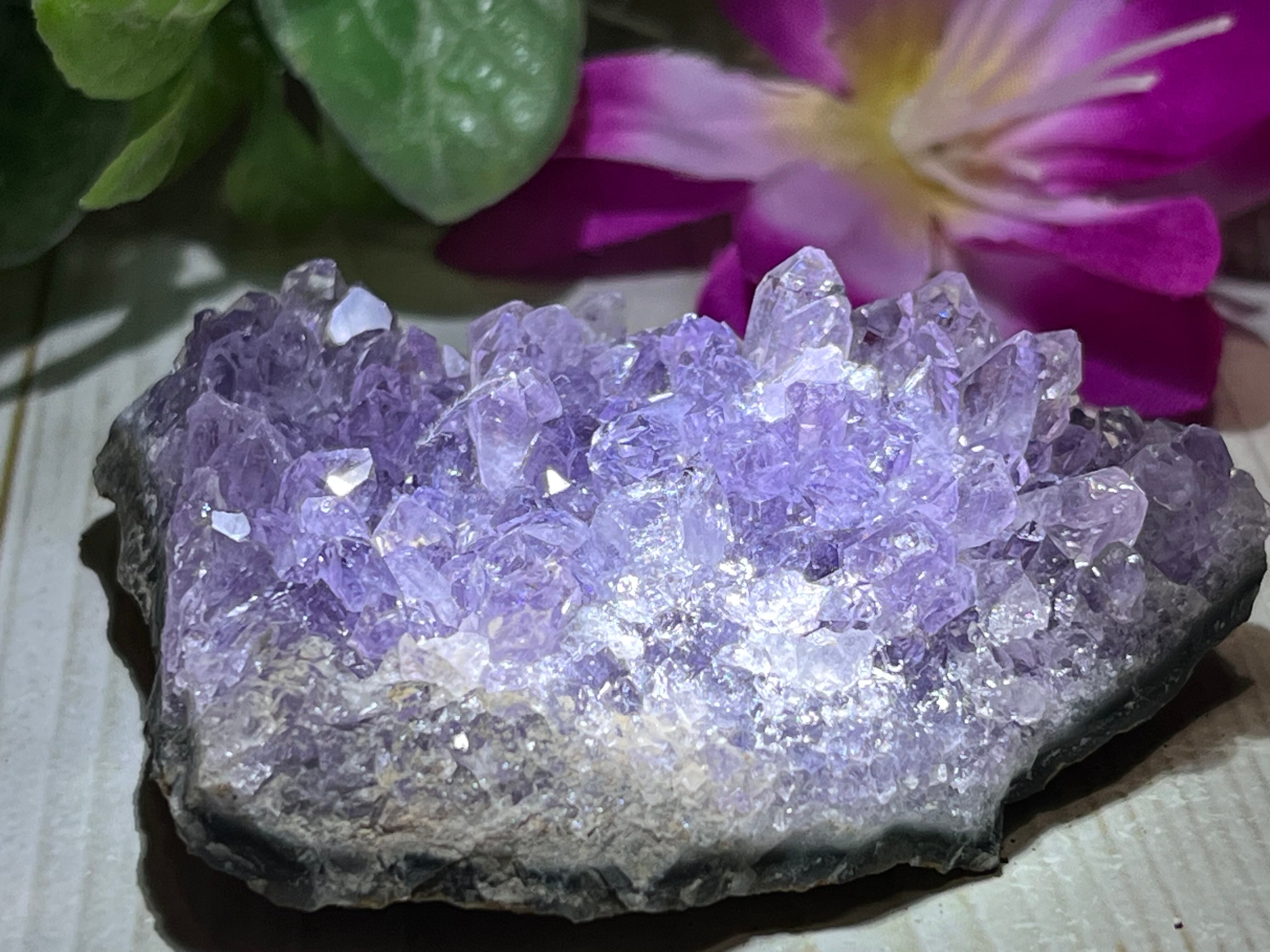 キラキラと光り輝く藤紫色のウルグアイ産のアメジストクラスターです✨