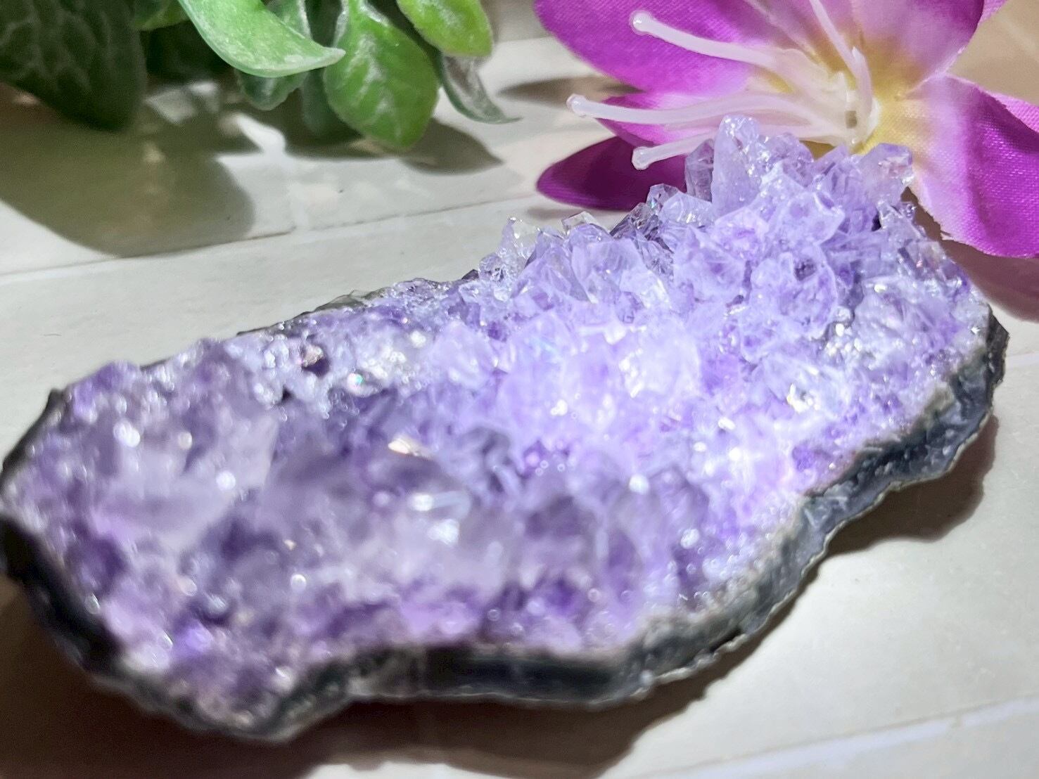 先端がカラーレス、根元は紫色のグラデーション アメジストクラスターです✨