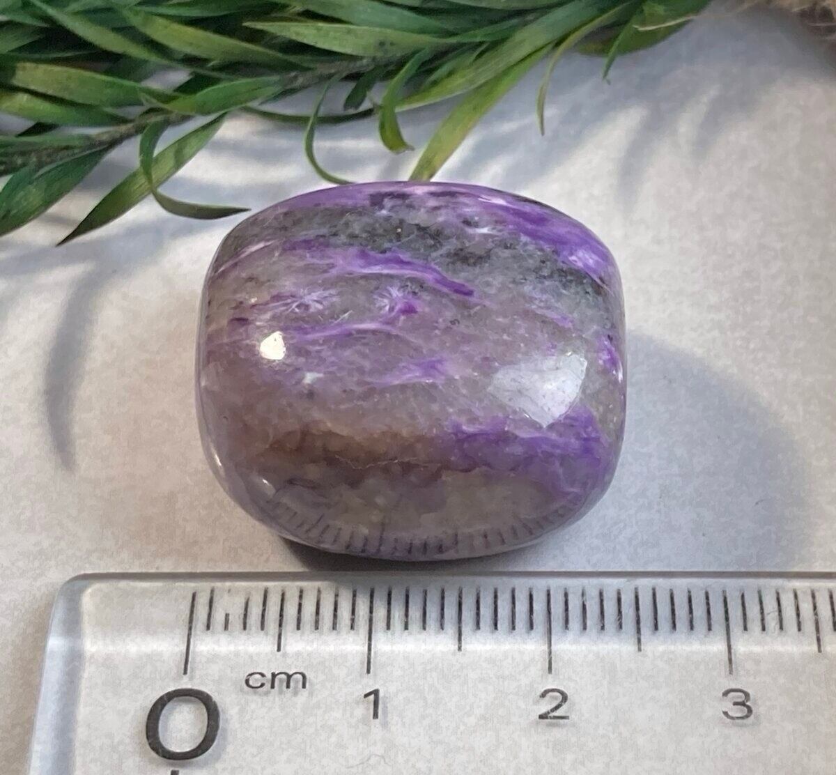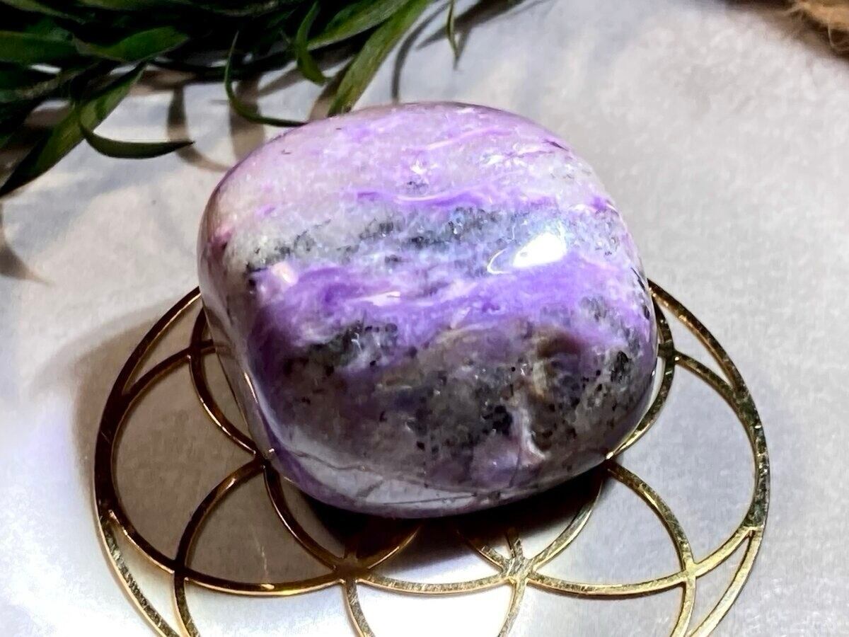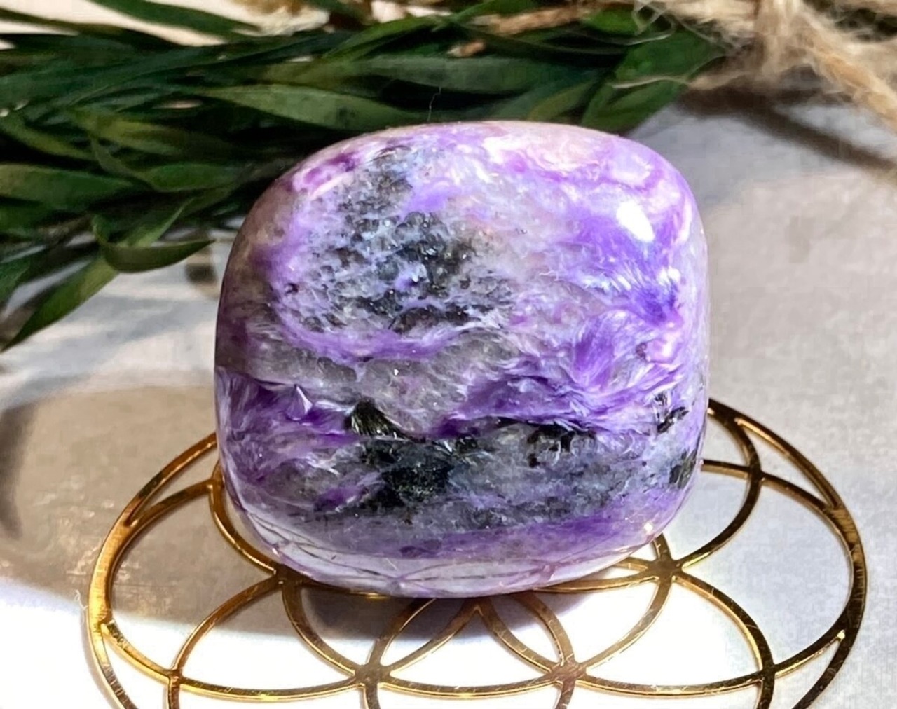 陰と陽が入り混じるような美しいチャロアイトのタンブルです✿*:・