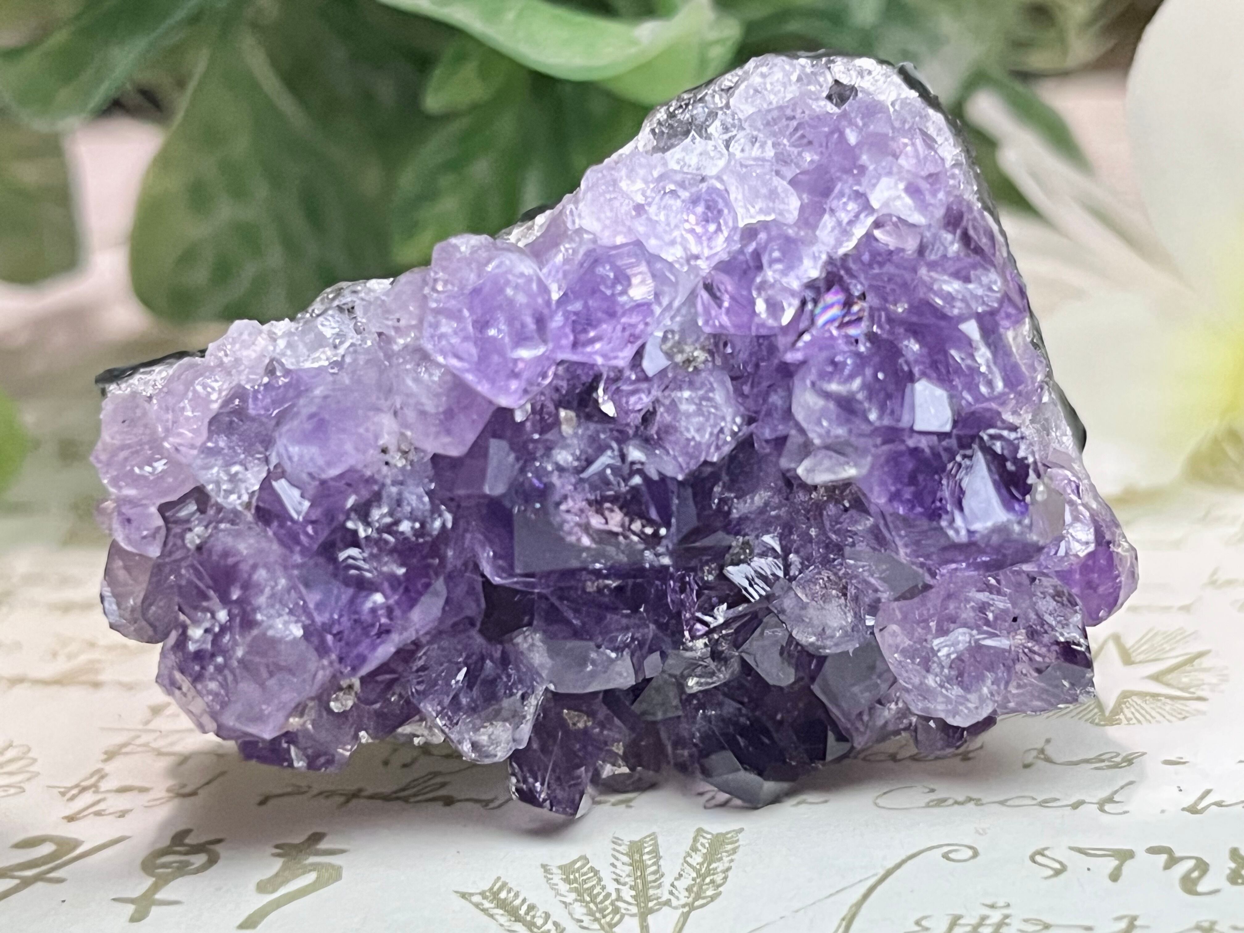 光の加減で虹がキラキラと輝く本紫色のウルグアイ産のアメジストクラスターです໒꒱ ̖́-