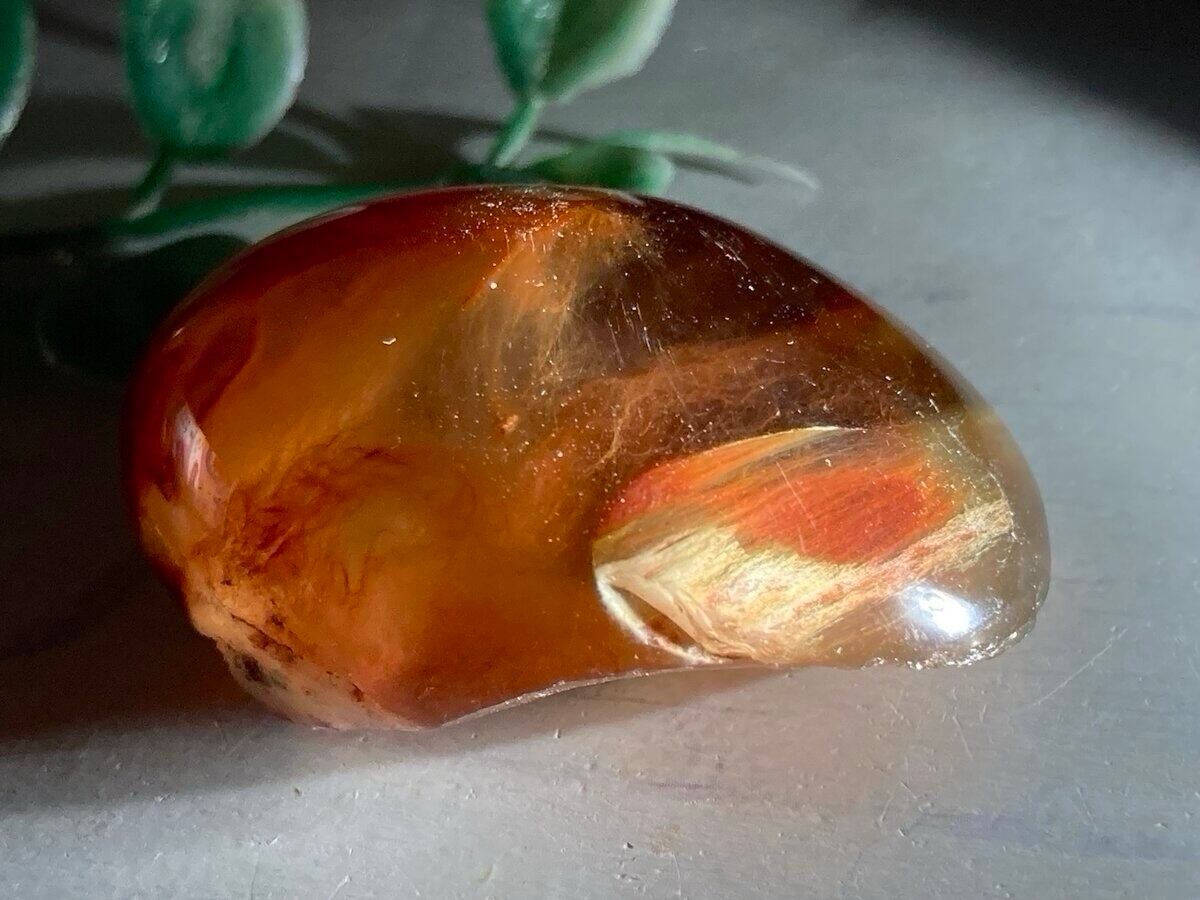 ふわふわした紅い絹糸のようなアンフィボールがギュッと詰まった幻想的なガーデンクォーツ タンブルになります❁⃘*.゜